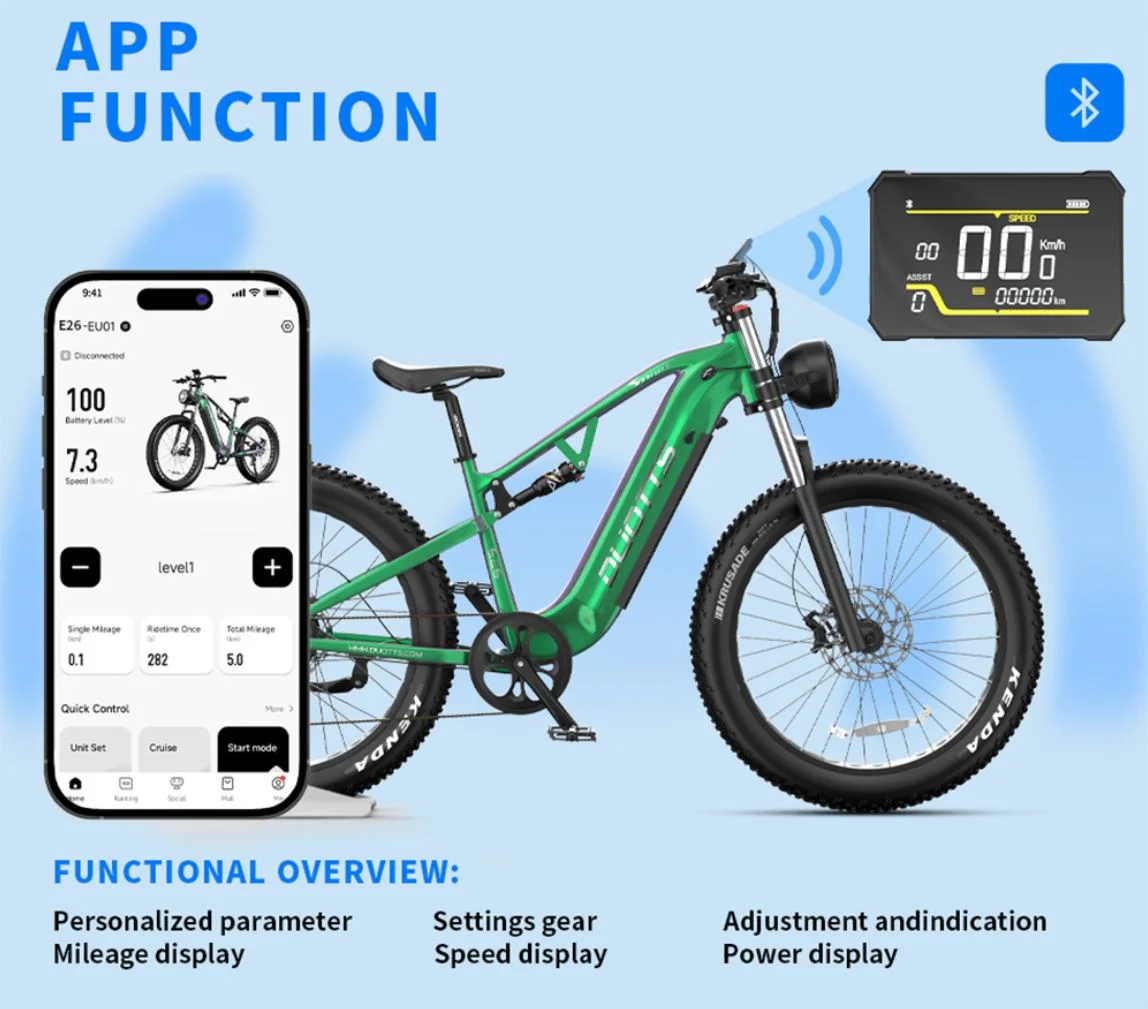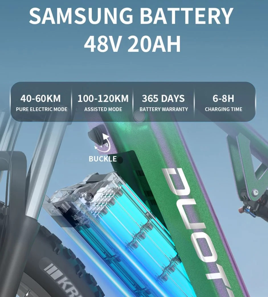 Az alkalmazás lehetővé teszi a különböző bringázási módok beállítását is, kiválasztva a legmegfelelőbb rásegítést a változó terepekhez és igényekhez. Az e-bike nagy kapacitású 48 V-os, 20 Ah-s, Samsung akkumulátorral van felszerelve, amely hosszú távú használatot biztosít, akár 100-120 km-es hatótávval PAS-módban és a meredek emelkedők sem jelentenek kihívást számára. A teljes töltési ideje 6-8 óra, így egyetlen éjszakai töltés elegendő lehet a következő napi használathoz.