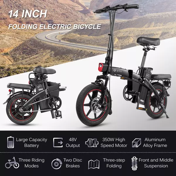 14" kerekű, 350 W-os, összecsukható elektromos kerékpár teljesítmény-rásegítővel