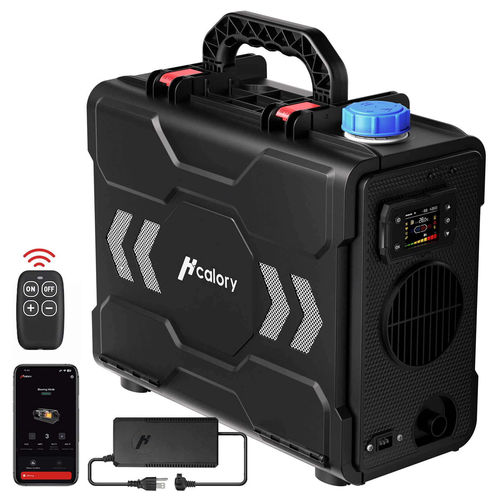 A HCALORY TB MAX az egyik legújabb „all-in-one” fűtőegység, amit kifejezetten a 2025-ös szezonra fejlesztettek tovább. A 7,5 literes beépített tankjával akár 10–12 órán át képes folyamatosan üzemelni, így hosszú túrákra vagy fagyos éjszakákra is ideális. A 8 kW-os fűtőteljesítmény bőségesen elég egy kisebb jármű, garázs vagy sátor kifűtésére. A készülék vezérlése többféle módon történhet: mobilappon, távirányítóval vagy LCD kijelzős panelről, ahol időzítő, hőmérséklet-szabályzás és automata start-stop funkció is elérhető.