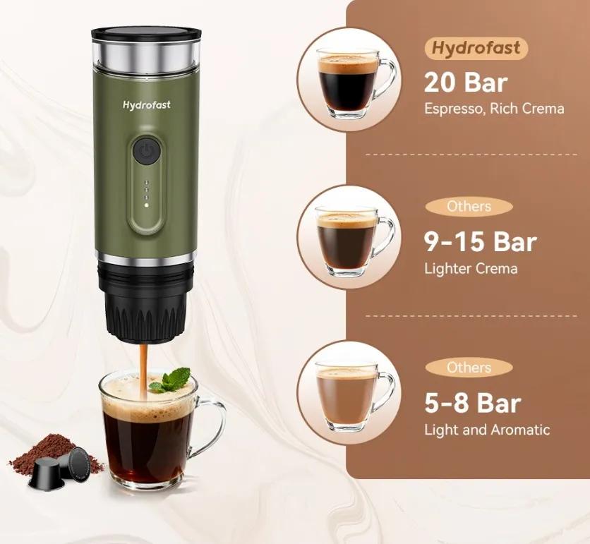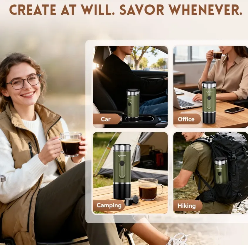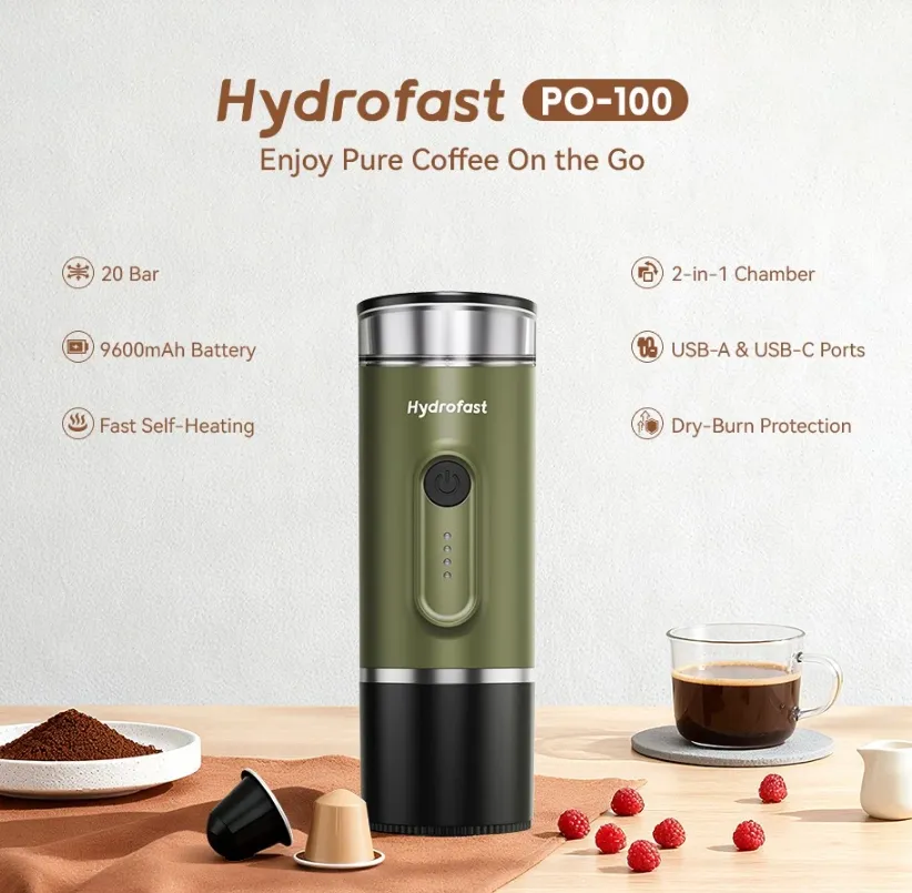 Van az a pillanat, amikor a természet lágy ölén, egy parkoló autóban vagy épp a reptéren ülve egyszer csak rádtör a koffeinéhség. Ilyenkor jön a nagy felismerés: a világon mindenre van megoldás, csak egy hordozható kávéfőző kellett hozzá. A Hydrofast PO-100 pont ezt a szerepet tölti be: egy zsebre vágható eszpresszógép, ami nem ismer határokat. Nem kell konnektor, nem kell barista, csak egy gombnyomás, és máris kész a krémes csoda. Legyen szó túráról, autós kiruccanásról vagy irodai „vészhelyzetről”, ez a kis zöld henger a túlélőkészlet része kell, hogy legyen.