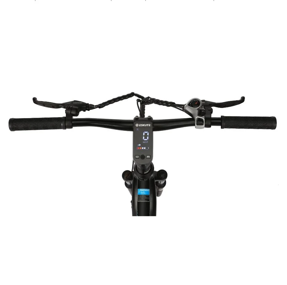 Mivel az Eskute Netuno egy elektromos mountain bike, ezért az első teleszkópja állítható keménységű, ami egy nagyon hasznos funkció terepen, de le is zárhatjátok, ha aszfalton tekernétek. Egy 7 sebességű Shimano váltót kapott, a megállásról pedig dupla tárcsafék gondoskodik. A kormányon található kijelzőn éritek el a legfontosabb információkat, de itt választhattok az 5 rásegítési fokozat közül is. Felszerelték egy LED fényszóróval, ami megfelel a német stvZO szabványnak.