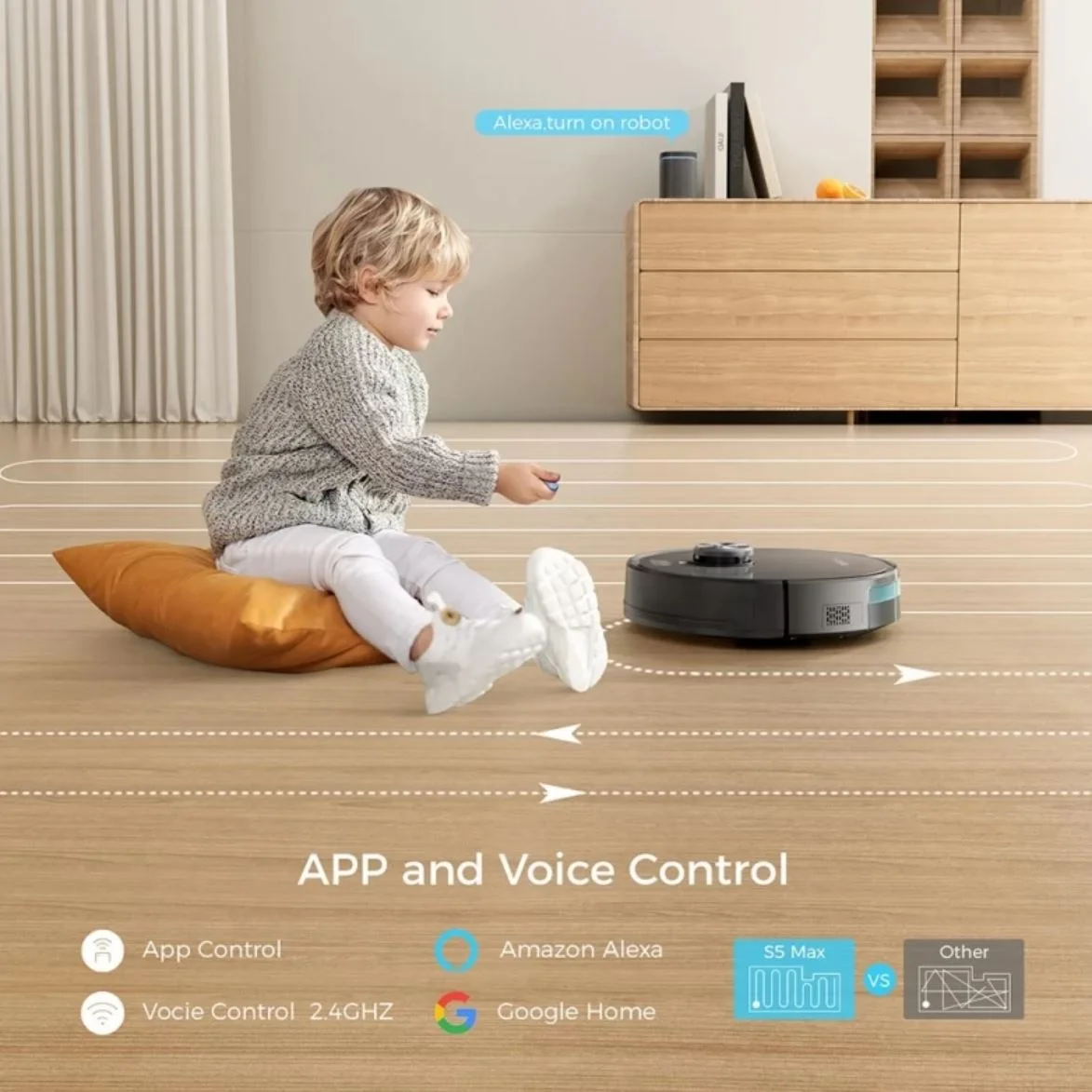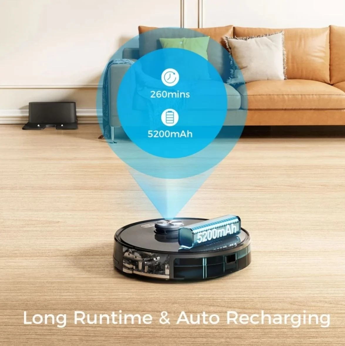 Az 5200 mAh-s akkumulátorával maximum 260 perces üzemidőt jósol a gyártó, ami bőven elegendő egy nagyobb lakás kitakarításához is. Applikáción keresztül vagy hangvezérléssel is irányíthatjátok a porszívót, de nincs szüksége folyamatos felügyeletre, hiszen alacsony töltöttség alatt vagy a takarítás befejeztével automatikusan visszatér a dokkolójához tölteni.