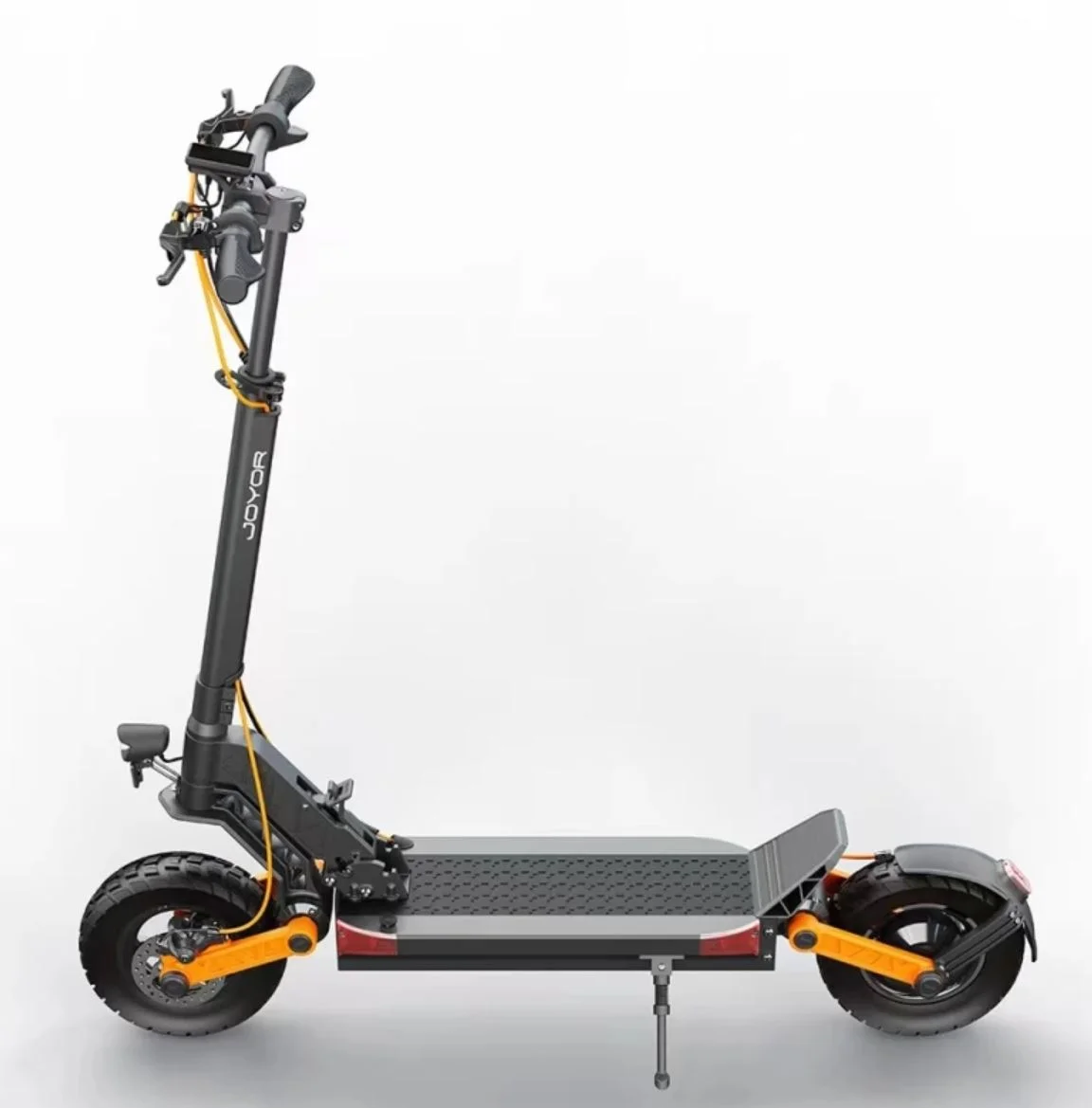 Az S10-S elektromos roller nevének végén szereplő S mutatja, hogy ez egy durvább, kétmotoros verzió, ráadásul két darab, kefe nélküli, 1000 wattos erőforrást kapott. Ez azért szerencsés, mert ha nem kell ekkora teljesítmény, az egyiket kikapcsolhatjátok. Ezzel az erős kétkerekűvel 65 km/h-ra gyorsulhattok fel, és a 60 voltos, 18 Ah-s akkuval akár 85 km is megtehettek, szóval nem fog gondot okozni, ha hosszabb utakra vágytok.