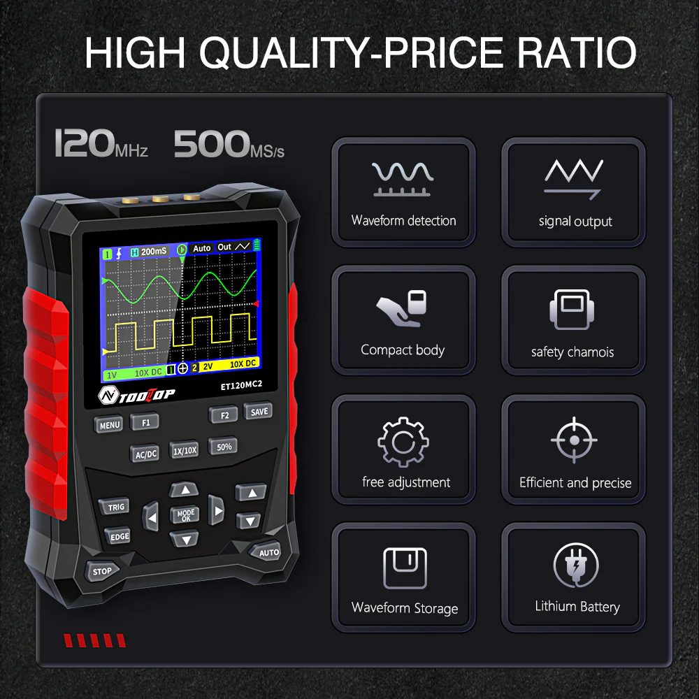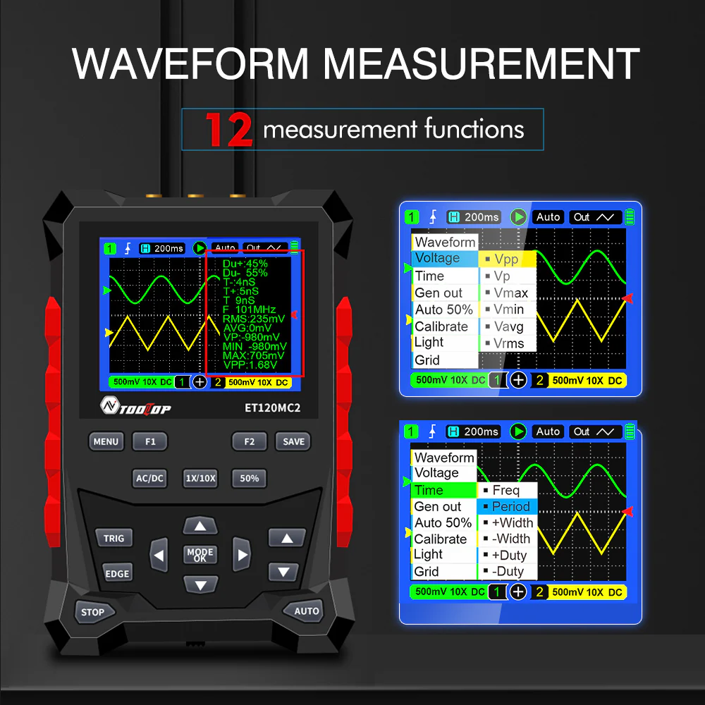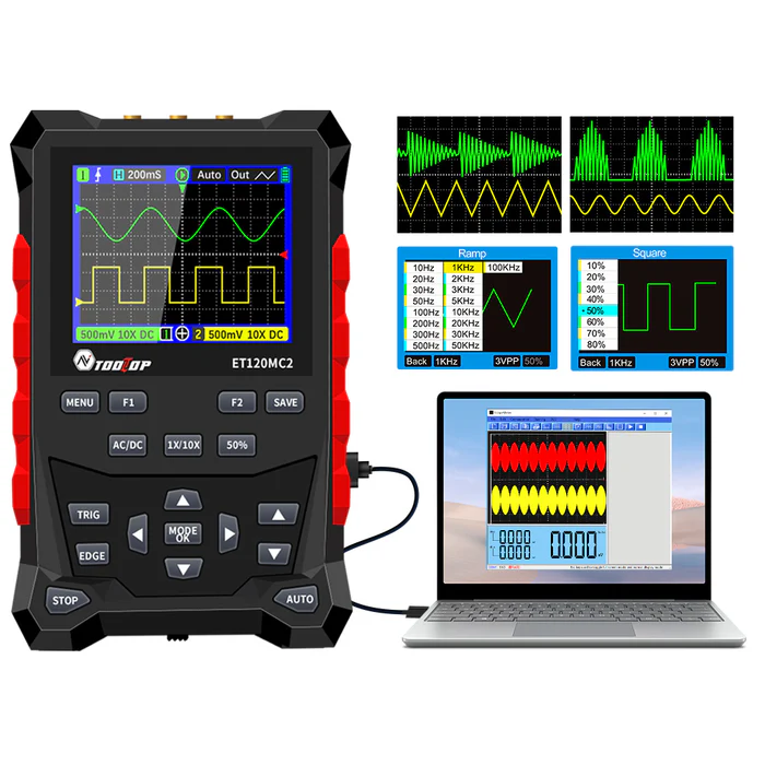 Az oszcilloszkóp elektronikus mérőműszer elektromos feszültségek időtartománybeli ábrázolására és mérésére szolgál. Az ET120MC2 és ET120MC2 PRO ideális a helyszíni mérésekhez, hisz kompakt méretének hála bárhová könnyedén veled tarthat. Alkalmas többek között háztartási készülékek ellenőrzésére, autódiagnosztikára, tudományos kutatásra, oktatásra, termékfejlesztésre és teljesítményvizsgálatra. A Ranvee-ről most mindkét műszer nagyon jó áron kuponozható, az alapverzió ára mindössze 25 800 forint.