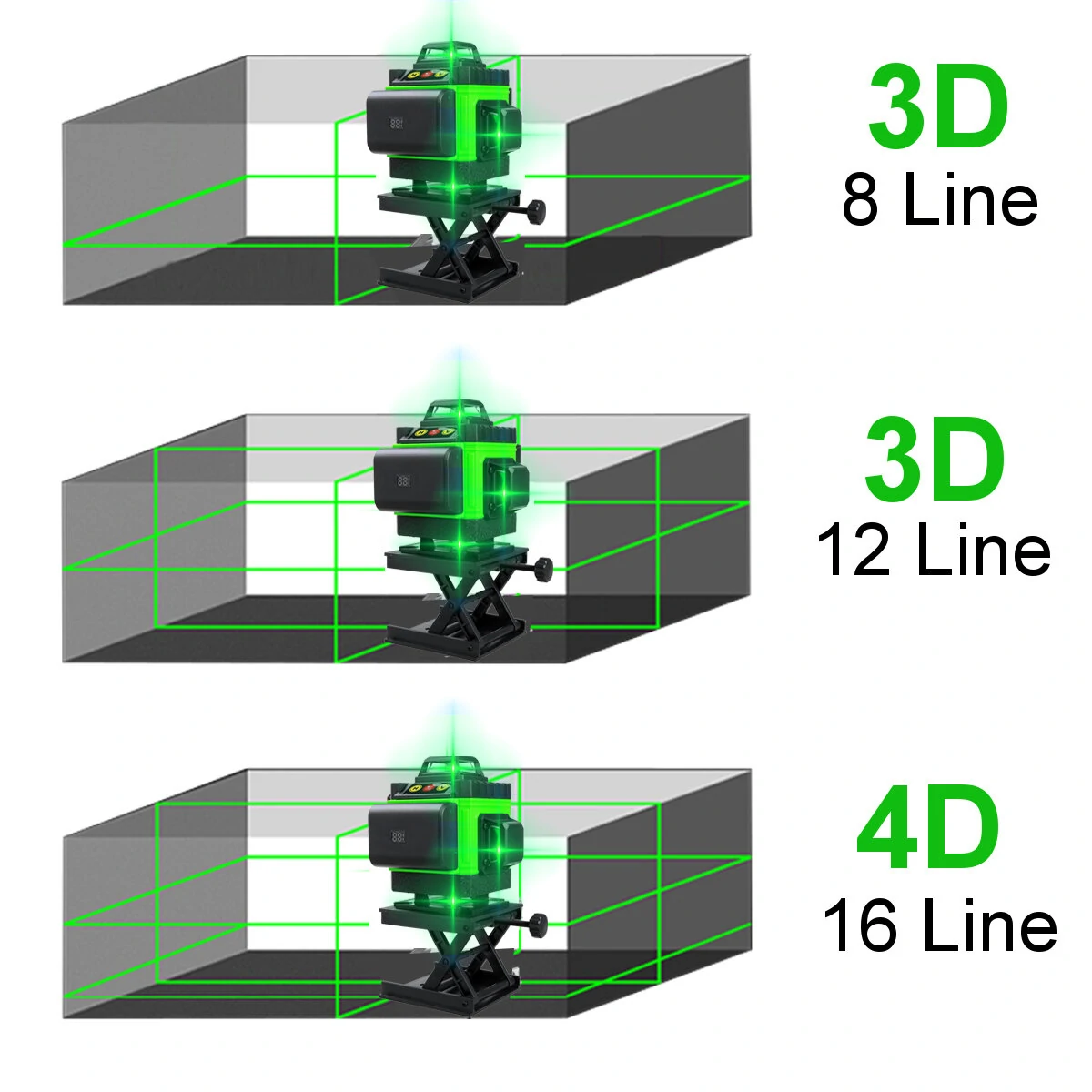 Lézersugarak segítségével 16 vonalat képes vetíteni a falra, padlóra, egészen 25 méteres távolságig. 4000 mAh kapacitású akkumulátorral üzemel, akár 5 órán át, vagyis nem igényel folyamatos hálózati áramot, így még kényelmesebb a használata. Az akku állapotáról pedig egy LED kijelző fog folyamatos tájékoztatást adni számodra.