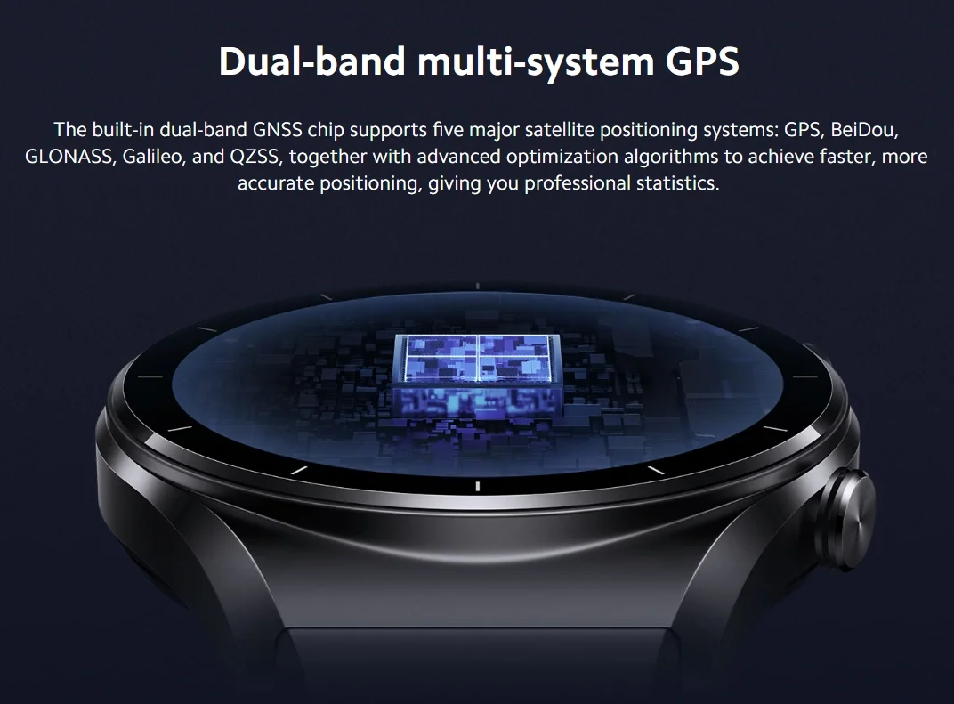 Ez már egy kerek kijelzős darab, 1,43 inch átmérőjű AMOLED panellel, AOD funkcióval. Zafírüveg védi, ami gyakorlatilag nem, vagy csak alig karcolódik. A tokozás rozsdamentes acél, a szíja pedig borjúbőr vagy gumi, verziótól függően. Akár még elegánsnak is lehetne mondani. 470 mAh-s aksi került bele, amivel a gyártó szerint átlagos használat mellett 12 napon át működik.