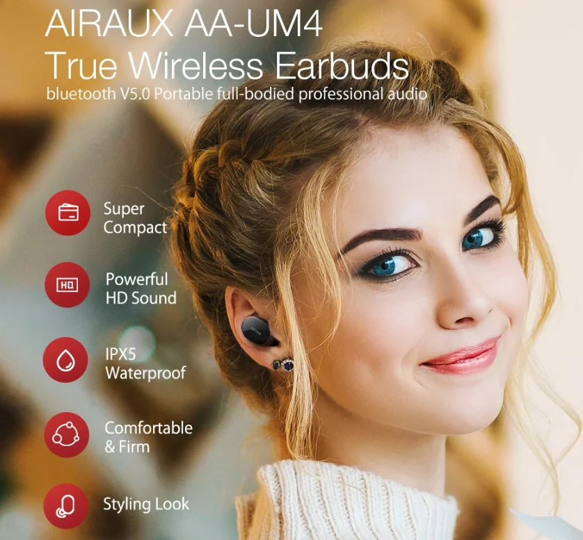 Az Airaux termékeket már alapból nagyon olcsóra tervezik, és amiket próbáltunk, azokról jó véleménnyel voltunk, ár/érték arányukat tekintve mindenképp. Az Airaux AA-UM4 az egyik legolcsóbb termékük, de most a BG20CES kuponkóddal még olcsóbb, mindössze csak 4200 forint. A sajtóanyag szerint 4 órás üzemidővel rendelkezik, és a töltőbölcsővel 3-4 alkalommal teljesen újratölthetjük. Ezt már Bluetooh 5.0-val szerelték, így nem kell attól félni, hogy filmnézéskor késik a hang a képhez képest. Nyomógomb nincs rajta, hanem csak érintésérzékeny kezelőfelület, mellyel tudunk hangerőt szabályozni, számokat váltani és a telefonbeszélgetéseket menedzselni.