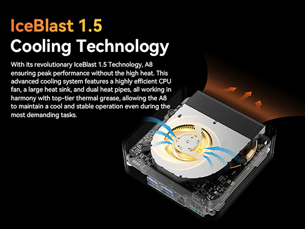 Mindezt egy kompakt, hatékonyan hűtött házba zárták, amely biztosítja, hogy a teljesítmény ne menjen a hőkezelés rovására. A ventilátorok csendesen dolgoznak, így a GEEKOM A8 nemcsak erős, hanem halk is.