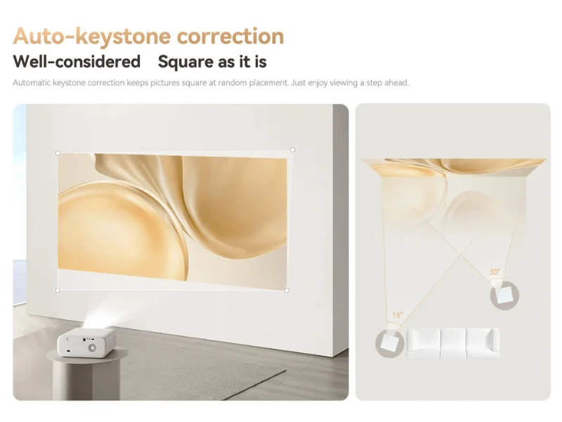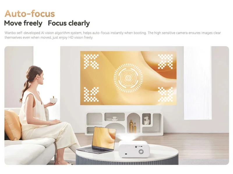 Az autofókusz funkció lehetővé teszi, hogy a kép mindig éles legyen, anélkül, hogy bármilyen manuális beavatkozásra lenne szükséged. Az automatikus trapézkorrekció pedig gondoskodik arról, hogy a kép torzításmentesen, tökéletesen nézzen ki, még akkor is, ha a projektort nem közvetlenül a vászon elé helyezed el.
