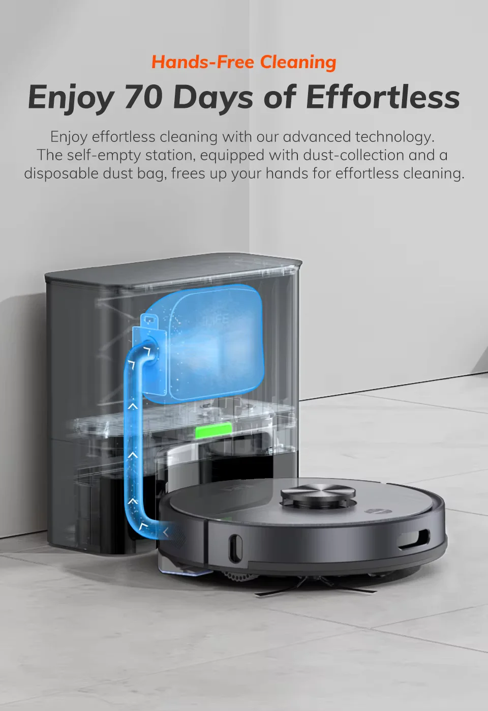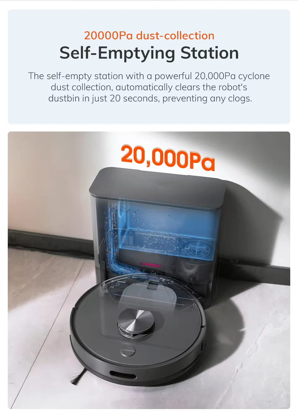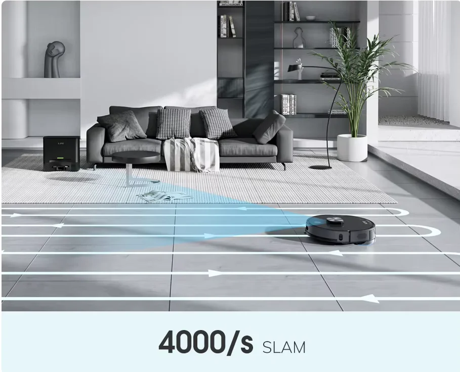 A navigációt egy LiDAR rendszer biztosítja, amely 0,1 és 10 méter közötti távolságban érzékeli az akadályokat. Természetesen minden fontos védelmi funkciót megkapott: nem esik le a lépcsőn, nem akad el, és az ütközéseket is elkerüli. A térképkészítés mellett no-go zónákat is beállíthatsz, sőt, többszintes lakásokban is remekül boldogul. Ha pedig nincs kedved az appot nyomkodni, akkor Alexával és Google Asszisztenssel is vezérelheted, így egy egyszerű hangutasítással elindíthatod a takarítást.