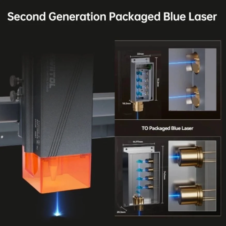 A lézergravírozó kerete alumínium ötvözetből készült és már összeszerelve, használatra készen érkezik. A fényvédő az ultraibolya fény 97 százalékát kiszűri, ezért elméletileg nincs szükség védőszemüvegre sem a használata közben. 32 bites alaplappal szerelték fel, ami gyors adatfeldolgozást tesz lehetővé. Számos biztonsági funkcióval ellátták, találtok rajta vészkapcsolót is. Kompatibilis a LaserGRBL-lel és a LightBurnnel (Windows operációs rendszerek esetén), és több fájlformátumot támogat, beleértve az NC, BMP, JPG, PNG, DXF kiterjesztéseket.