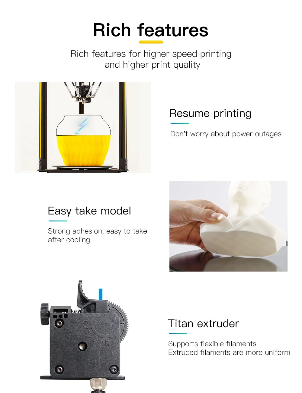 Az FLSUN Q5 3D nyomtató kerek asztala 20 centiméter átmérőjű, amin maximum 20 cm magas alkotásokat készíthettek el. A gyártó állítása szerint könnyű összerakni, csak néhány csavart és csatlakozót kell a helyére tenni az első használat előtt. Az érintőképernyővel is vezérelhető 3D nyomtató titán extrúdert kapott, amivel a flexibilis filamentek sem okoznak neki gondot, ráadásul akár 270 Celsius-fokos hőmérsékletre is felhevíthető a fej, így szinte bármilyen anyaggal egyszerű a nyomtatás. Az FLSUN Q5 képes folytatni a feladatát egy esetleges kikapcsolás vagy áramszünet után, így nem vész kárba a több órás munka. 65 800 FtAz árak a webshopok átváltási rátái miatt eltérőek lehetnek különböző pénznemek esetén (pl. ha Ft-ra állítjátok a webshopot, az árak rendszerint magasabbak, mint USD-re állítva). A cikkben feltüntetett árak tájékoztató jellegűek, és minden esetben a webshop felületén USD-ben (vagy EUR-ban, ha nincs USD lehetőség) kijelzett ár forintosított megfelelői (a cikk írásakor érvényes bankközi árfolyam szerint).-ért rendelhetitek meg Németországból.