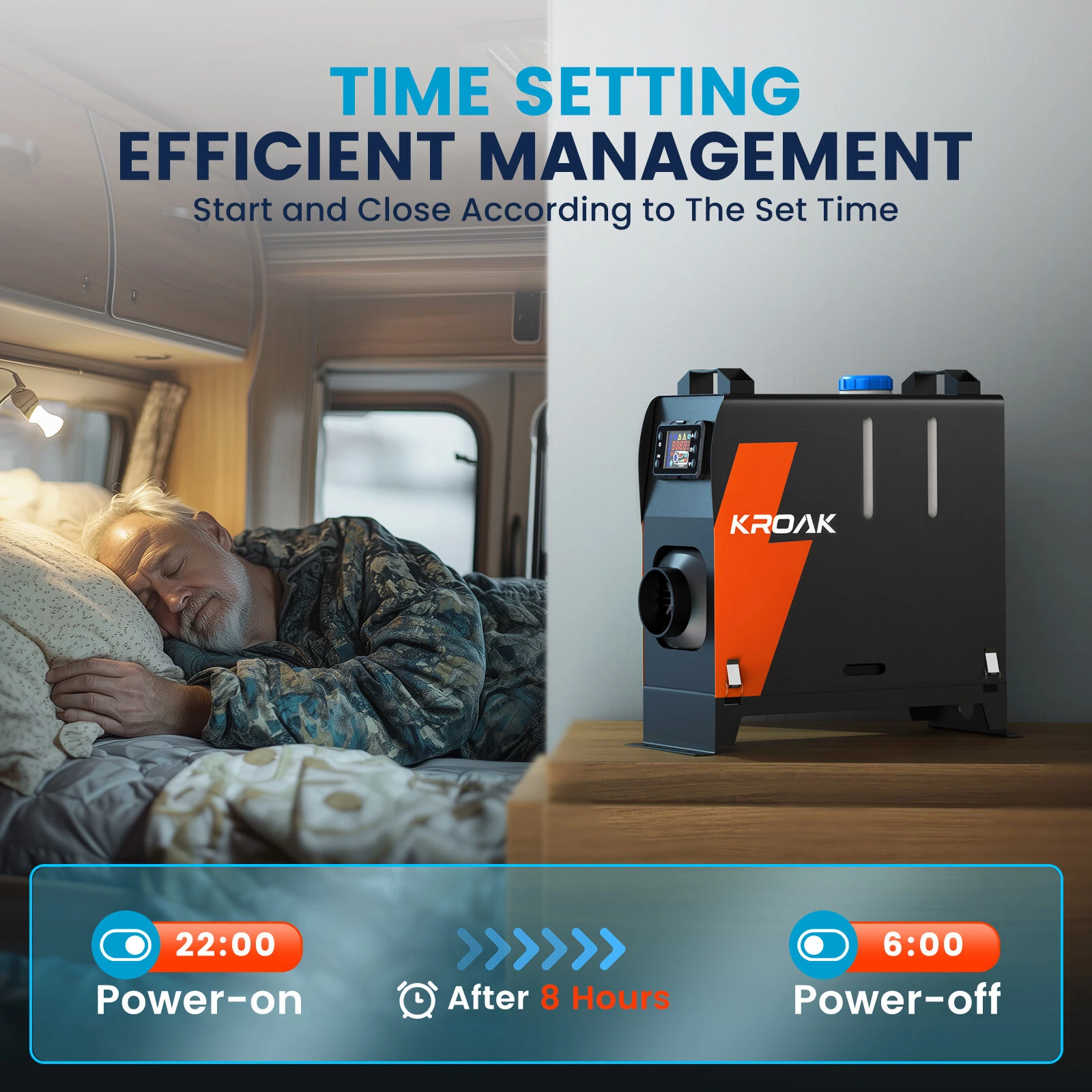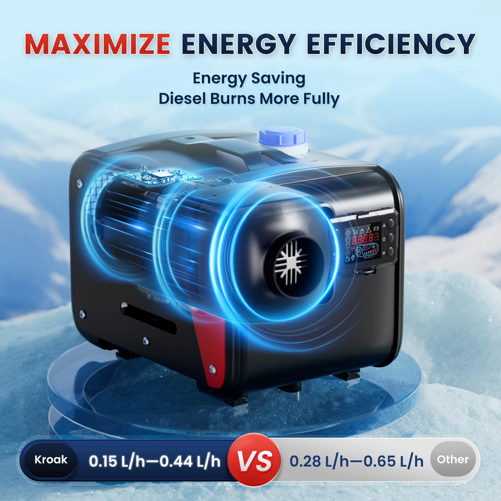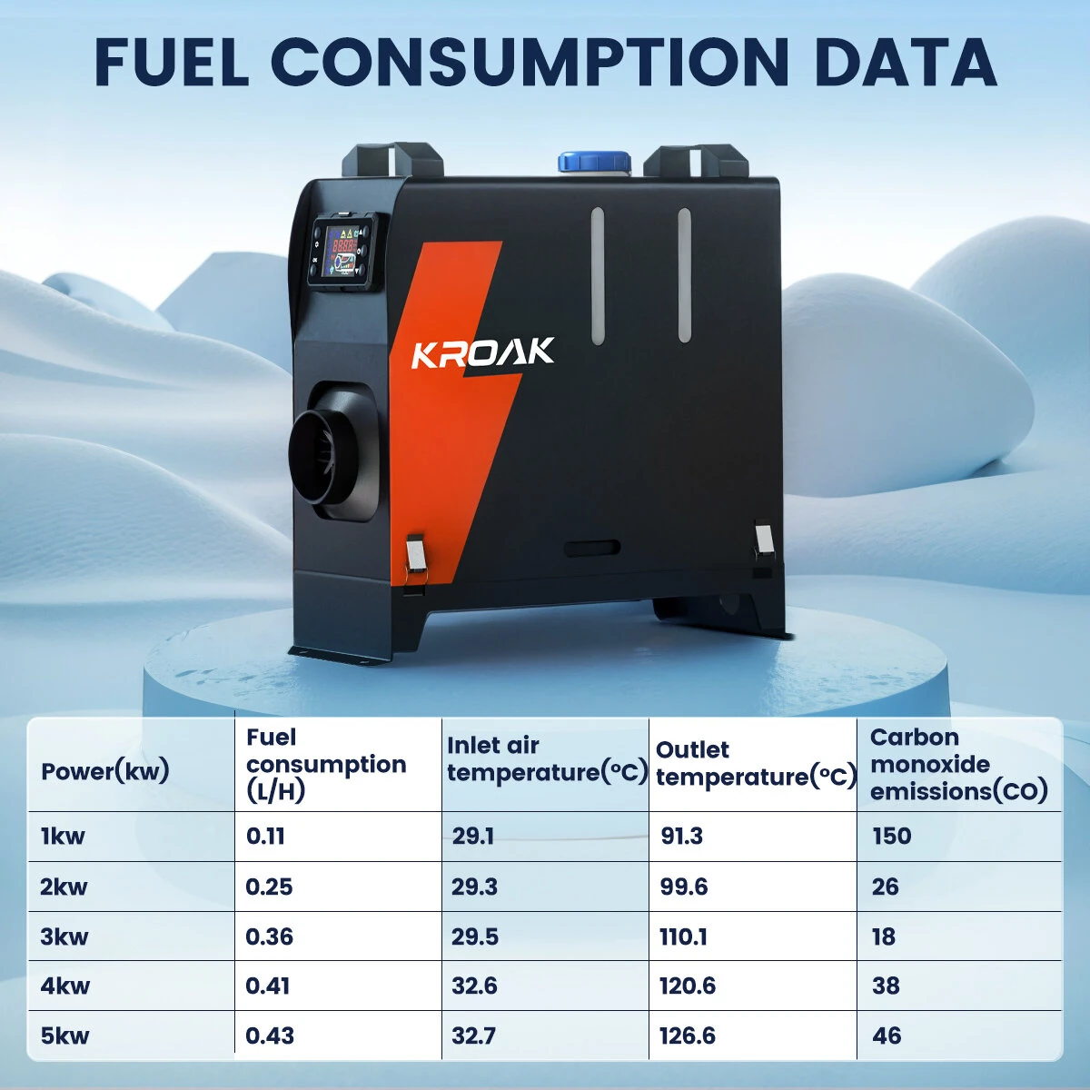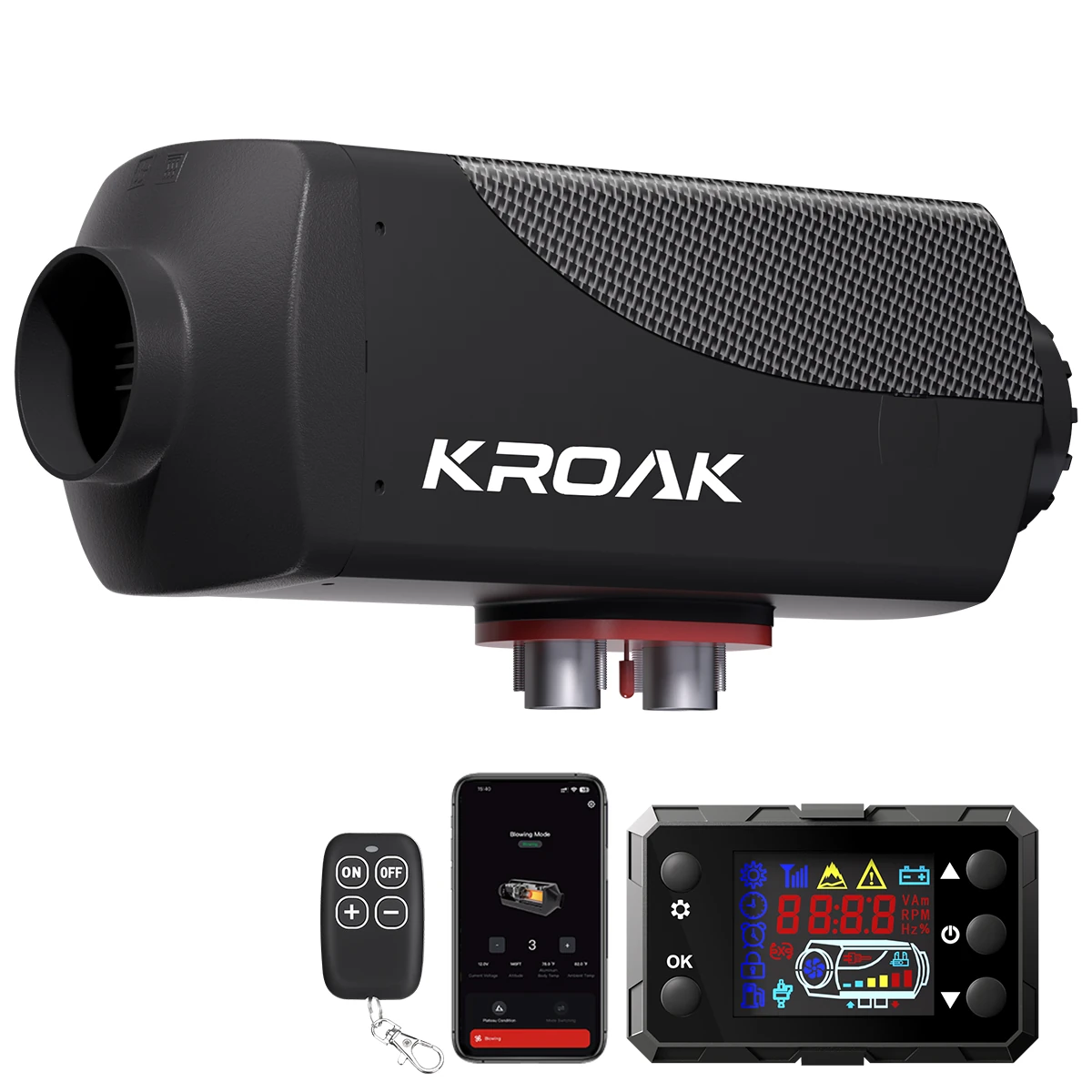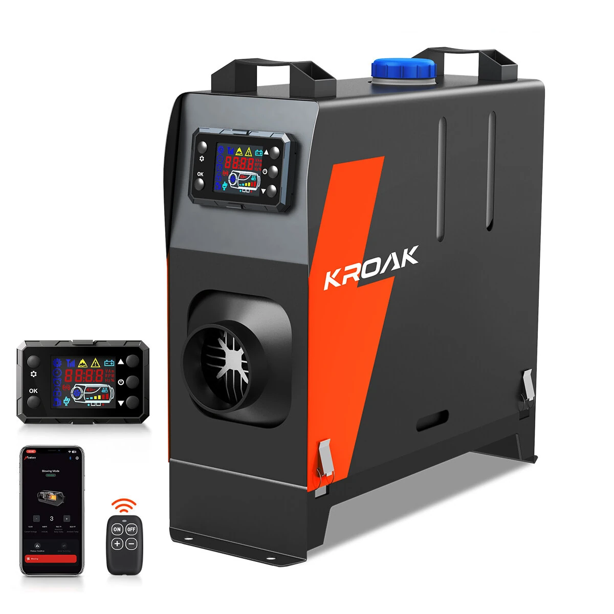 A KROAK F1 autós parkolófűtés, ahogy a fent említett két társa, ez is kiváló megoldás a zimankós időjárás okozta kellemetlenségek ellen. Az 5-8 kW teljesítményű fűtőegység gyorsan felmelegíti az autó belsejét és a motort, így kényelmesebb indulást és kisebb üzemanyag-fogyasztást biztosít. Egész pontosan 0,16 l/h és 0,44 l/h között fog a fogyasztás alakulni. Az üzemanyagtartálya 10 liter dízelt is képes tárolni, így hosszú távon megoldott lehet a fűtésed. Ez a gép 38×13,5×13,5 cm-es mérettel érkezik. Irányítás tekintetében pedig teljesen megegyezik a többiekkel: távirányító, LCD kijelző és ha kifizeted a felárat, akkor Bluetooth-os telefonos vezérelhetőség jár mellé.