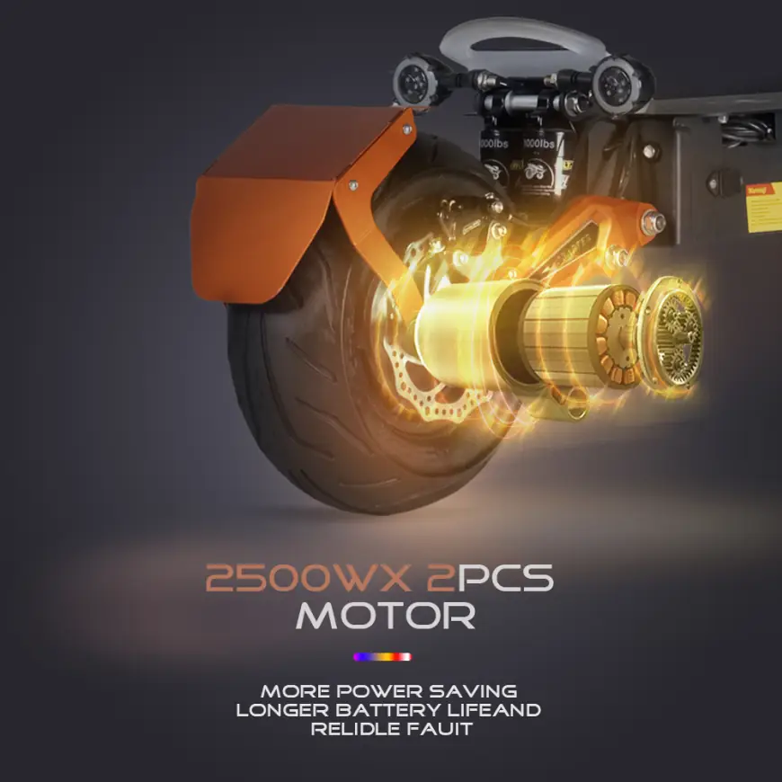 A gumicseréhez nem kell a motort is leszerelni, elég levenni a gumiköpenyt, illetve ha lehajtjátok az állítható magasságú kormányt, akkor két pici keréken tolható is a roller. A váz 150 kilogrammot is elbír, így az igazán súlyos egyéneket is könnyedén fogja mozgatni a rendelkezésre álló 5000 watt. Világításból sincs hiány, egyrészt elöl-hátul vannak lámpái, másrészt az első lengéscsillapítókon LED-ek futnak körbe, de a hátsó lámpák jelzik a fékezést, sőt index-szel is ellátták a járgányt. Ha még ez sem lenne elég, a kormányközépen is van egy hangulatért felelős LED csík. A minden ízében brutális járgányért a HKD5HU kóddal 557 500 FtAz árak a webshopok átváltási rátái miatt eltérőek lehetnek különböző pénznemek esetén (pl. ha Ft-ra állítjátok a webshopot, az árak rendszerint magasabbak, mint USD-re állítva). A cikkben feltüntetett árak tájékoztató jellegűek, és minden esetben a webshop felületén USD-ben (vagy EUR-ban, ha nincs USD lehetőség) kijelzett ár forintosított megfelelői (a cikk írásakor érvényes bankközi árfolyam szerint).-ot kérnek.