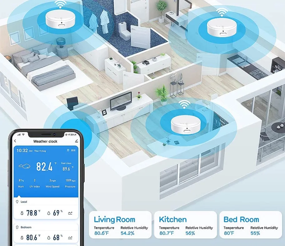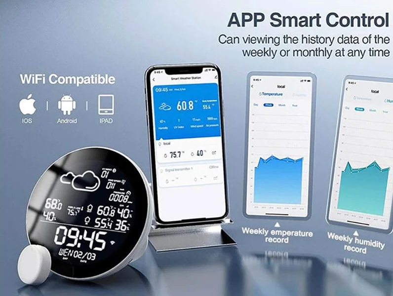 Az alábbi kütyüvel el lehet felejteni azokat az időjárás állomásokat, amik teljesen offline működnek és csak helyben lehet leolvasni róluk, hogy milyen idő van. Egy ilyen kütyüvel már a világ egy másik pontjáról is látunk minden adatot, mert okos. WiFi-re kapcsolódik, és az összes adatot okostelefonon lehet követni a Tuya alkalmazással.