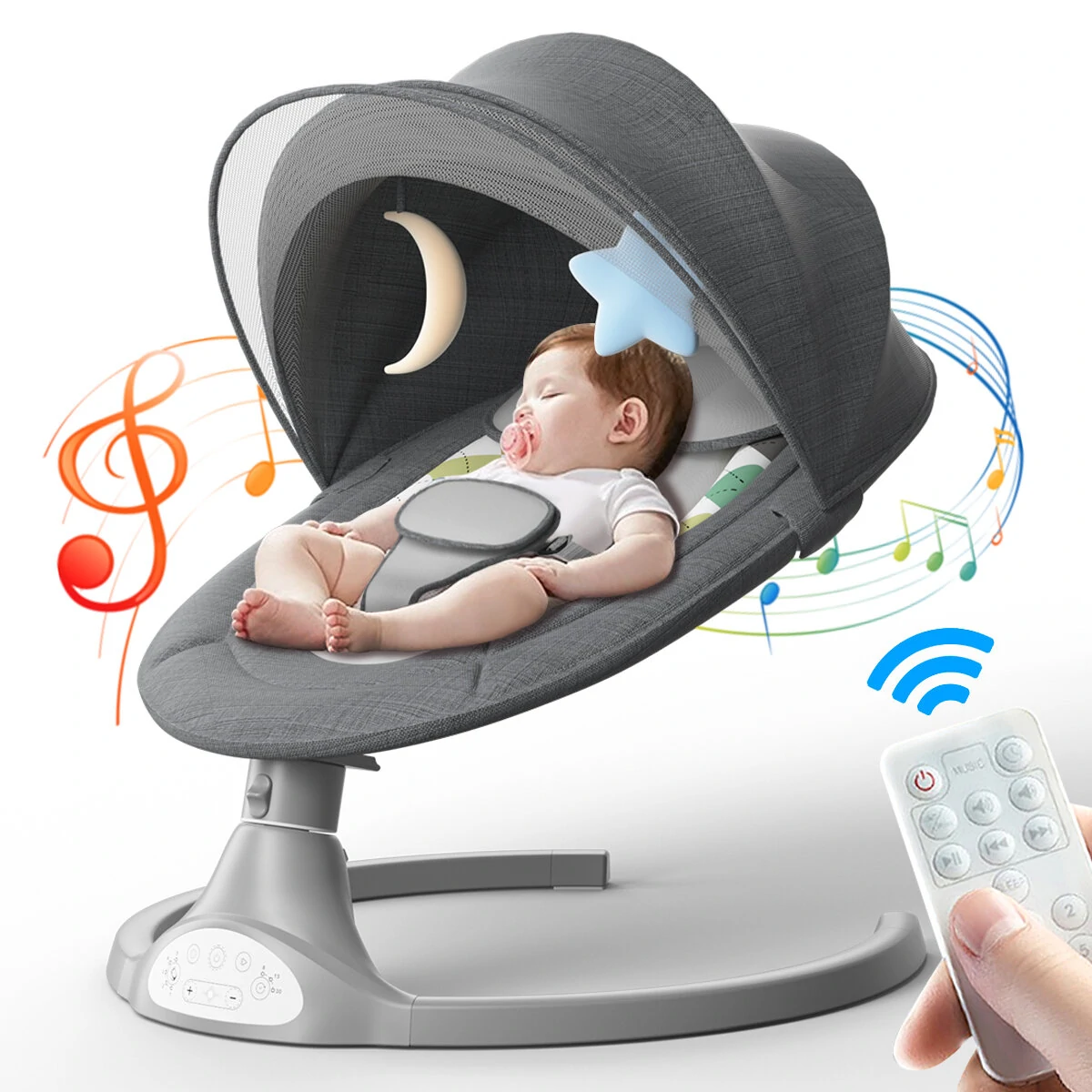 Maximum 9 kilogrammos bébit lehet beletenni, és ötpontos öv tartja a helyén. Az ülőke huzat leszedhető és mosható, ami nagyon fontos egy ilyen eszköznél. Csak simán ülésnek is használható, de annál többre képes az eszköz. Beépített hangszórója van, és beépített zenékkel tudja nyugtatni a gyerkőcöt, de Bluetooth-szal is rácsatlakozhatunk, és betehetjük a csöppség kedvenc zenéjét. A másik nagy feature a ringatás, amiből ötfélét tud, és ezzel megnyugtatja a babát. Tartozik hozzá egy távirányító is, hogy ne kelljen hozzányúlni a kezeléséhez.
