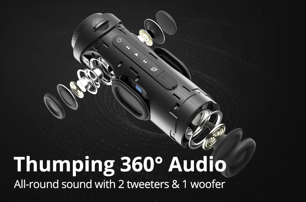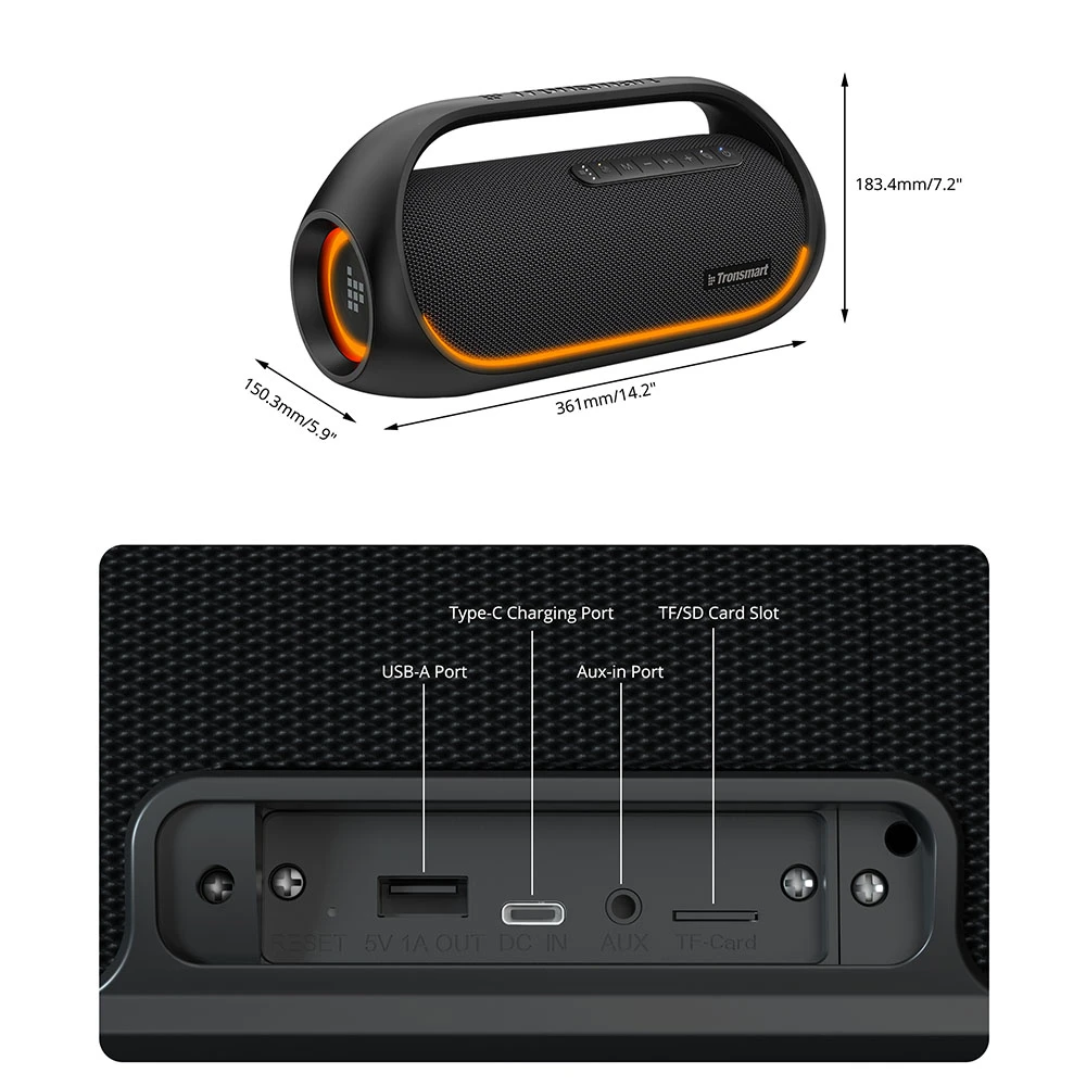 A Tronsmart T7 egy kisebb, de rendkívül sokoldalú Bluetooth hangszóró, amely 30 wattos teljesítménnyel rendelkezik. Ő is járt már nálunk teszten, az erről született írást ide kattintva olvashatod. Ideális választás otthoni zenehallgatáshoz, kirándulásokhoz vagy kisebb bulikhoz. A LED-fények a zene ritmusára reagálnak, így vizuálisan is feldobják az élményt. Az IPX7-es vízállóságának köszönhetően a T7-tel még esős időben sem kell lemondanod a kedvenc zenéidről.