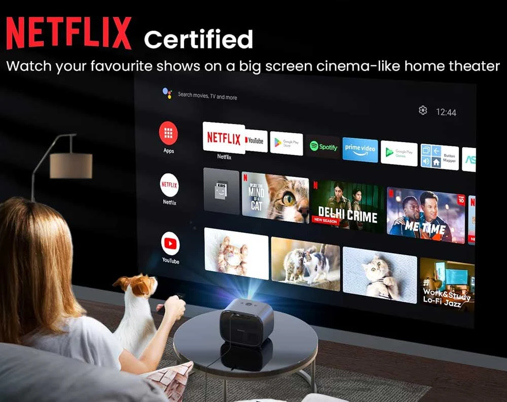A projektor tetején található gombokkal vagy a hozzá kapott távirányítóval, illetve hangasszisztenssel is vezérelhető, így angolul próbálkozhatsz az utasítgatásával. A hátoldalára került egy DC, egy HDMI, egy jack és egy USB port. 2,4 GHz-es és 5 GHz-es WiFi kapcsolaton keresztül lehetőség van képernyő tükrözésre, mindössze egy hálózaton kell lennie hozzá a két eszköznek. A hosszú élettartam reményében teljesen zárt optikai egységgel látták el, így elkerülve a portól való koszolódást. A gyártó 30 000 órás LED-élettartamot garantál, ami napi 4 órás használat mellett is több mint 20 évig tartó működést jelent.