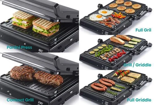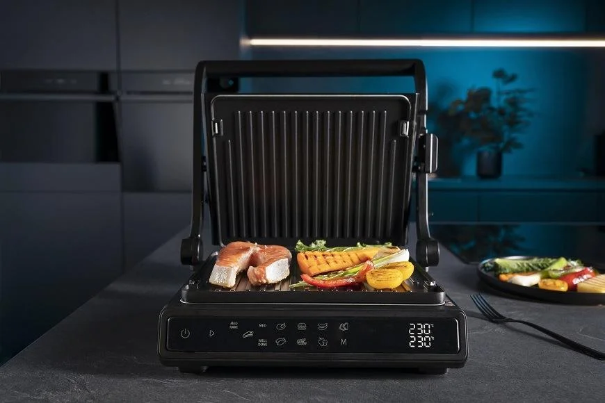 A Hisense kontakt grill tökéletes társ minden grillezéshez, legyen szó szaftos steakekről, ízletes hamburgerekről vagy zöldségekről. Az 1600 W-os teljesítmény és a 672 cm²-es grillfelület lehetővé teszi, hogy egyszerre több adagot készíts el, miközben a 9 automatikus program garantálja a tökéletes végeredményt. A LED-kijelző nemcsak modern külsőt kölcsönöz a készüléknek, hanem egyszerű és intuitív kezelést is biztosít.