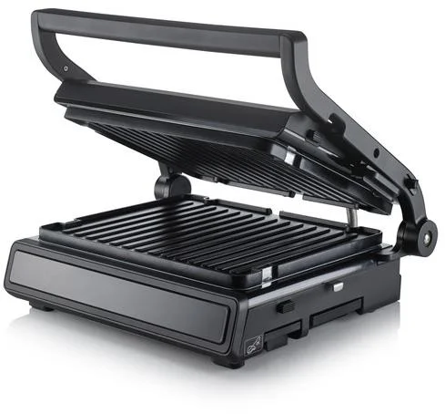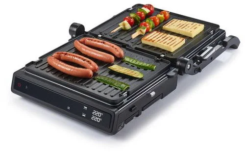 A tapadásmentes teflonfelületű grilllemezek könnyen tisztíthatók, és külön hőmérsékletszabályzásuk révén akár egyszerre többféle ételt is elkészíthetsz. A hőmérséklet-szondával még pontosabb kontrollt nyerhetsz, hogy az ételek mindig az igényeidnek megfelelően süljenek át. A grill 180°-ban nyitható, ami még több variációs lehetőséget kínál, a biztonsági zár pedig a kényelmes tárolást segíti. Az eredeti 66 290 Ft helyett most 47 890 Ft-os áron lehet a tiéd, így igazán megéri befektetni ebbe a sokoldalú készülékbe.
