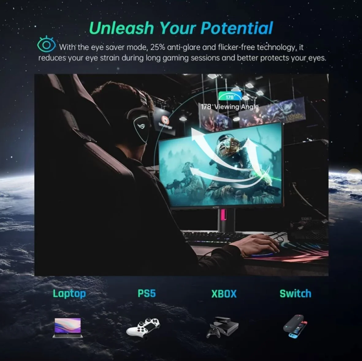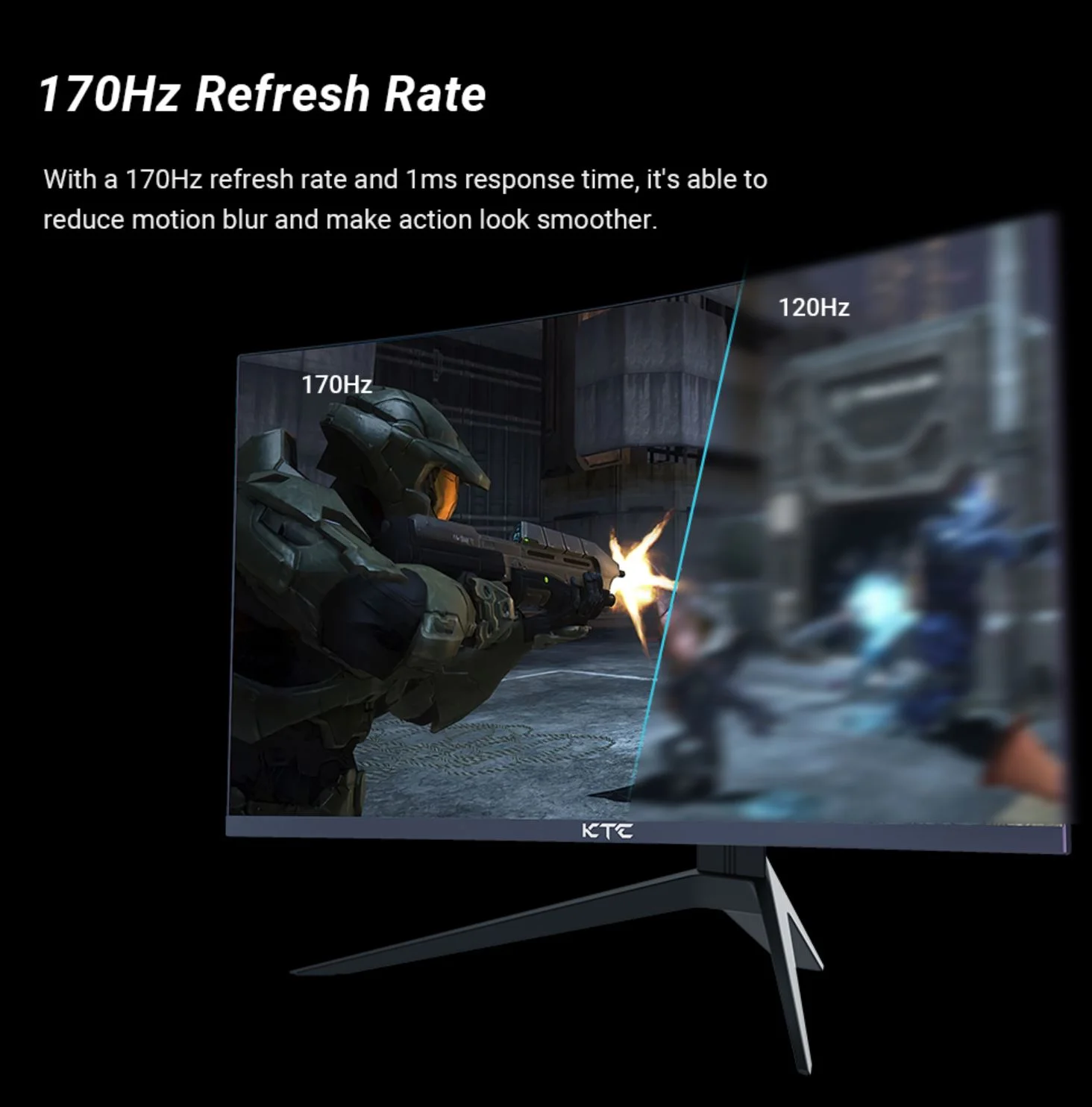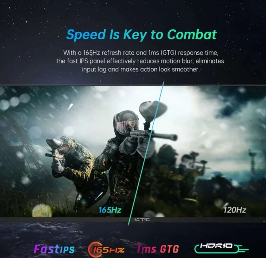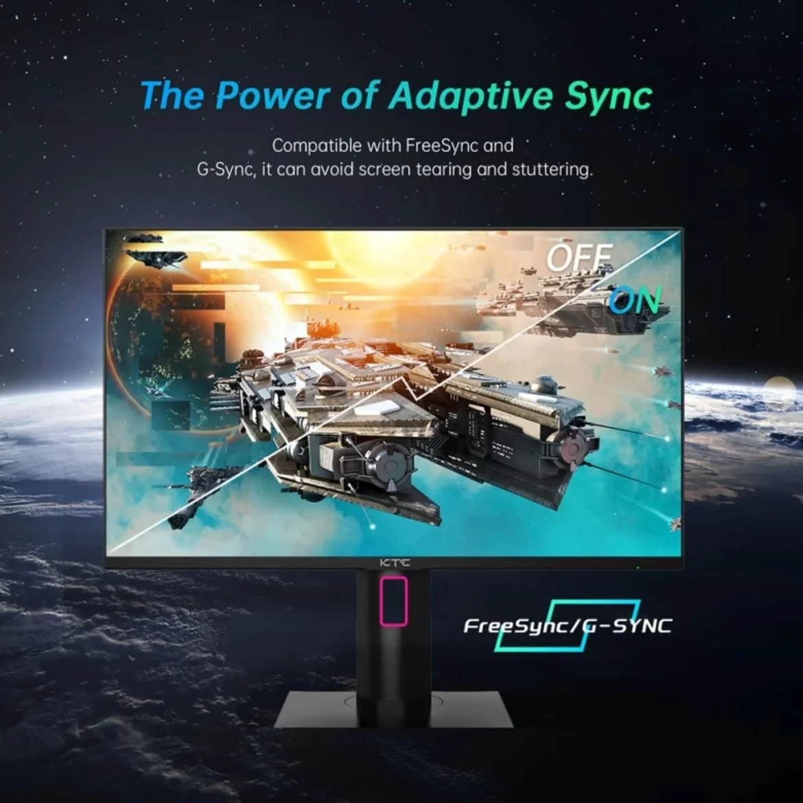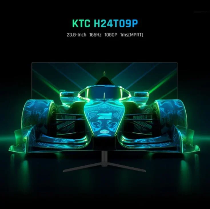 A KTC H24T09P nevéből ki lehet következtetni, hogy ez egy 24 colos kijelző. A 8 bites panel 99,53 százalékban lefedi az sRGB színskálát, és még HDR támogatást is kapott. 1920×1080 pixel felbontású, Fast IPS panellel rendelkezik, így sokkal gyorsabb a válaszideje, mint egy átlagos megjelenítőnek. A képfrissítése 165 Hz, ráadásul támogatja a FreeSync és a G-Sync technológiákat is, így szakadozásmentes játékélményben lehet részetek. A monitor vibráció mentes képe alacsony kékfény kibocsájtású, ezáltal kevésbé megterhelő vele a játék vagy a munka.