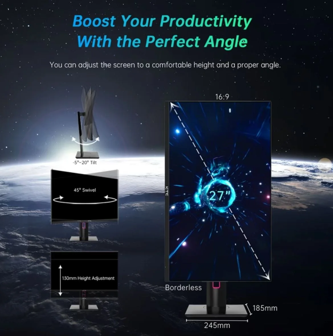 A H27T22 FreeSync és G-Sync támogatást is kapott. Ezek lényege az, hogy kiküszöbölik az úgynevezett screen tearing jelenséget. Több előre beállított módot kínál, beleértve az FPS-t (First-Person Shooter), az RTS-t (Real Time Startegy) és az RAC-t (Racing). Találtok rajta két HDMI és két darab DisplayPort csatlakozót, de felszerelték még egy 3,5 mm-es jack aljzattal is. A magassága elég nagy tartományon belül állítható, 16 centit tudtok emelni vagy süllyeszteni rajta, és oldalirányba elfordul összesen 90 fokot, ráadásul dönthetitek -5/+20 fokban. Kaptok hozzá lábat, de szerelhetitek 100×100 mm-es VESA fali tartóra, így egy csomó helyet megtakaríthattok az asztalon. Ha szeretnétek még többet megtudni a monitorról, olvassátok el korábbi tesztünket.