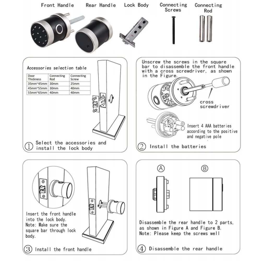 A működéshez 4 darab AAA elem szükséges (nem tartozék), ami normál használat mellett akár 10 hónapig is bírja. Ha a feszültség 4,8 V alá csökken, minden nyitásnál hangos figyelmeztetést kapsz, és még körülbelül 100 nyitásra számíthatsz. Ha teljesen lemerül, a zár USB-n keresztül power bankkal is újraéleszthető – ez azért elég megnyugtató.