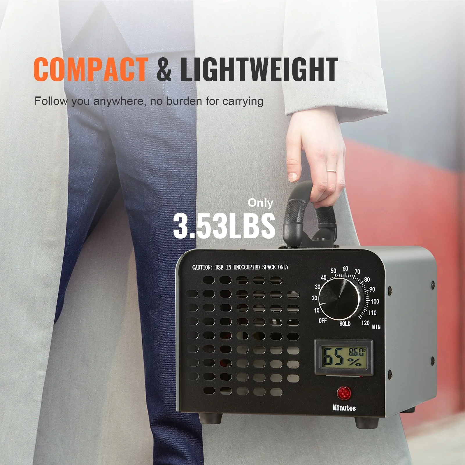 A VEVOR ózongenerátora 36 000 mg/h maximális ózonkibocsátással választható kedvezményesen, amivel akár 300 m² területet is „kipucolhatsz”. A készülék páratartalom-kijelzővel és 0-120 perces időzítő funkcióval rendelkezik. Az ára pedig kedvezőbb nem is lehetne.