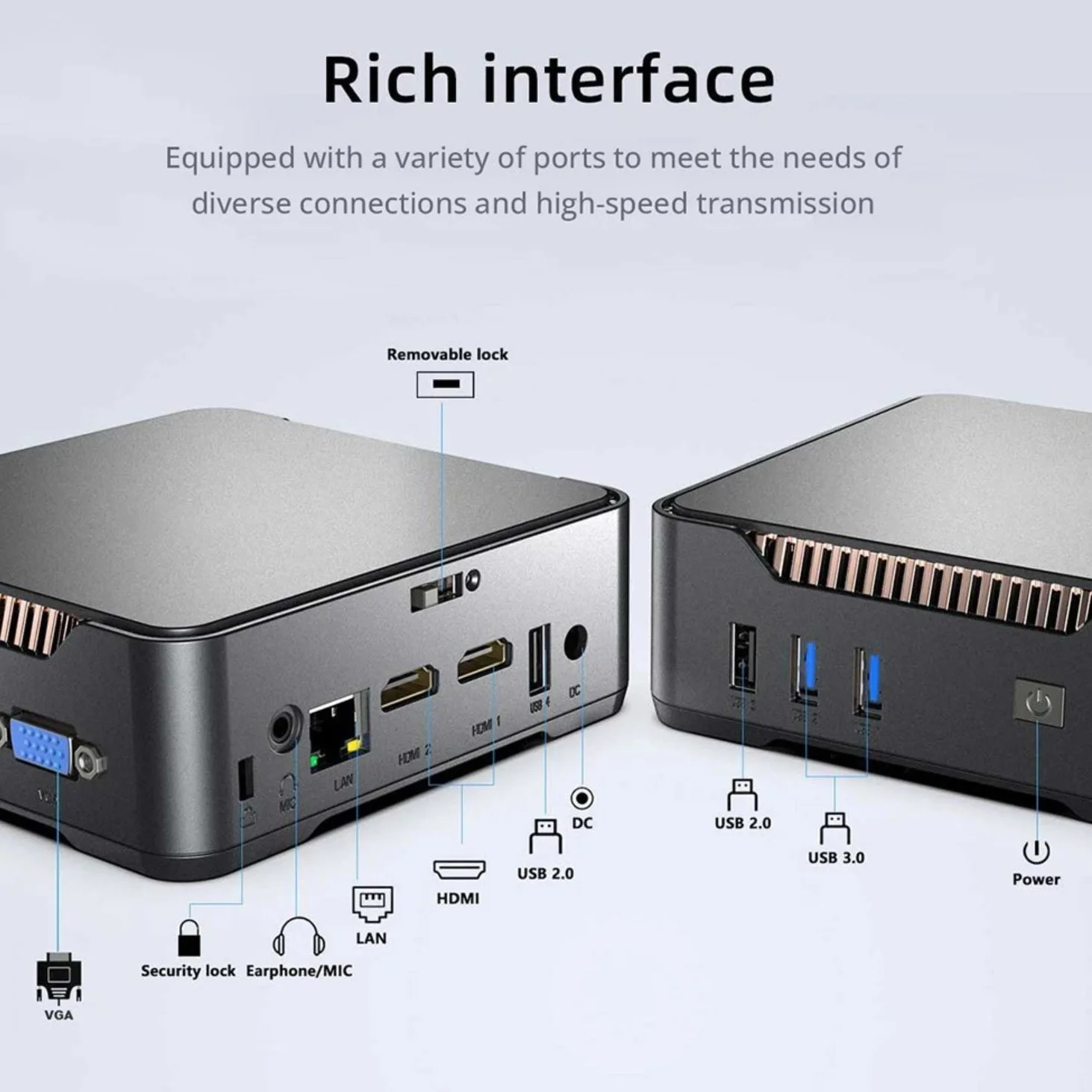A GK3 Plus miniszámítógép szuper kicsi, mindössze 130x130x47,5 mm-es és 0,7 kg. Egy Intel Alder Lake N95 négymagos processzort kapott, ami 3,4 GHz órajelen is működhet. 16 GB memóriával látták el, a tárhelyet pedig egy 512 GB-os SSD biztosítja. A kapacitás maximum 2 TB-ig tovább növelhető a 2,5 colos foglalat segítségével. Integrált Intel UHD grafikus gyorsítóval rendelkezik, amely 4K videólejátszást biztosít és támogatja a három képernyős megjelenítést. Ez a konfiguráció tökéletesen kiszolgálja a hétköznapi feladatokat.