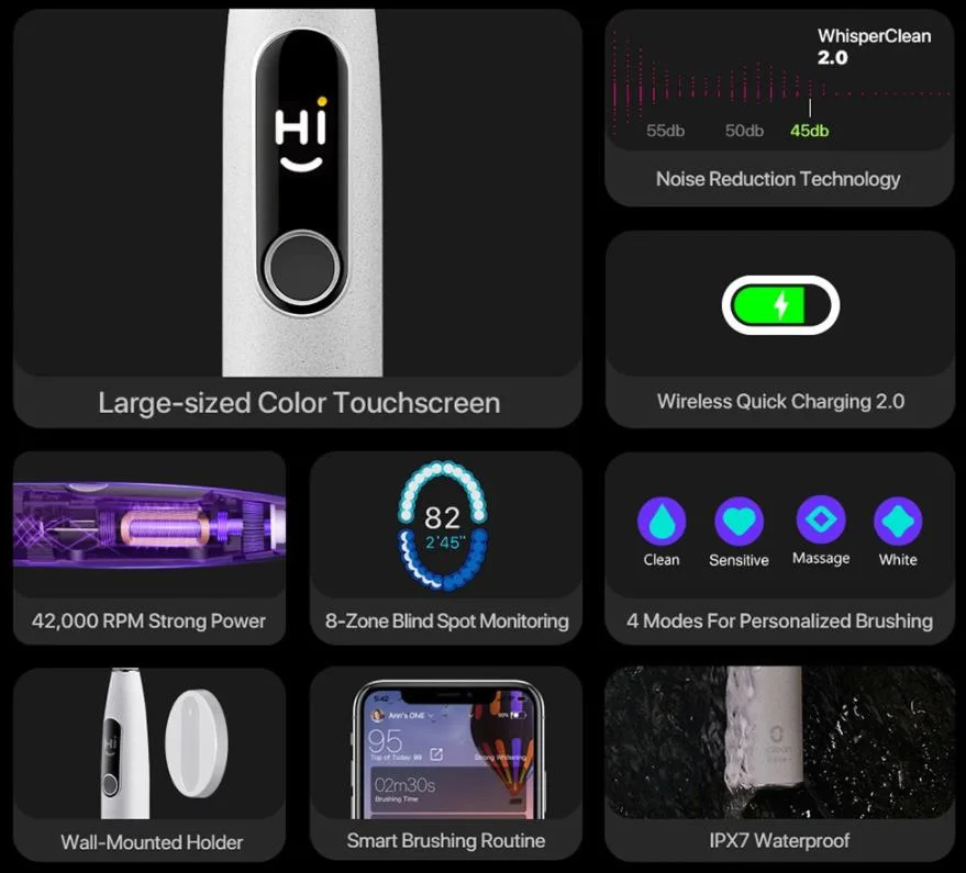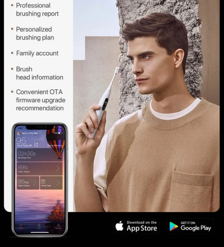 Természetesen Bluetooth segítségével csatlakoztathatjuk a telefonunkhoz, ahol személyre szabhatjuk a működését. Négyféle mód közül választhatunk, a fogmosás intenzitása pedig 32 lépcsőben állítható. Az alkalmazás mutatja, hogy mennyit mostunk fogat egy kefével, és mikor kell azt cserélni, illetve arról is tájékoztat, hogy mennyire volt sikeres a fogmosásunk, nem hagytunk-e ki egy kis részt. Ezt valós időben mutatja a fogkefe kijelzőjén is, így mosás közben is csekkolhatjuk a hatékonyságunkat.