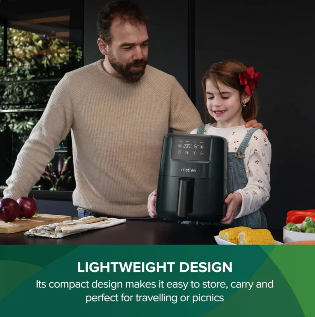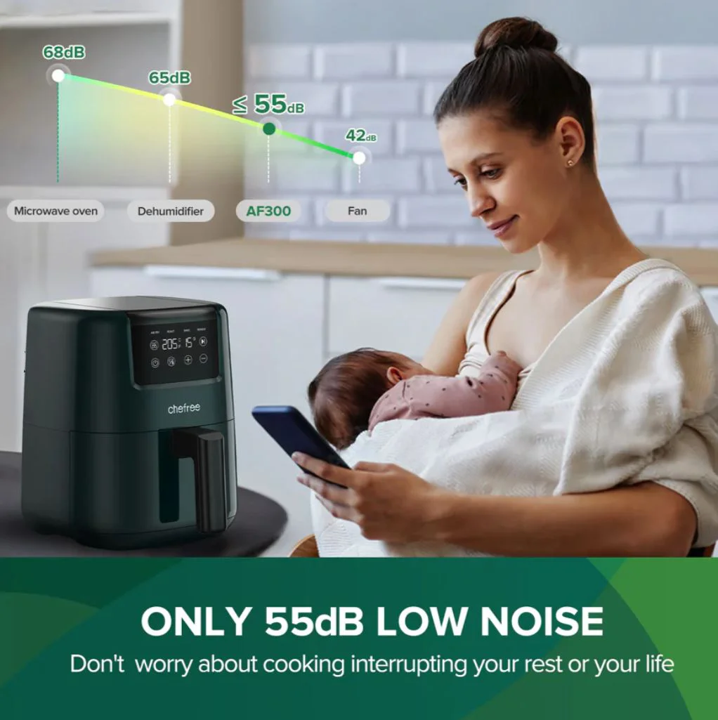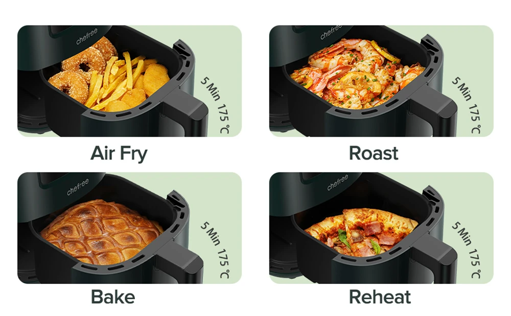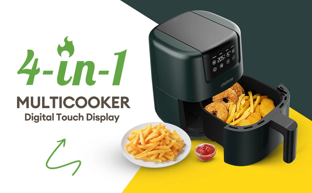 A CHEFREE AF300 egy kompakt konyhai kisgép, ami 4 alapprogrammal és egy szögletes, 2 liter űrtartalmú kosárral várja az éhes szájakat, abból is körülbelül 1-2 főt. Akinek nincsenek extra igényei és nem akar sokat költeni egy forrólevegős fritőzre, annak ez a modell jó választás lesz, hiszen ugyanolyan egészséges, olajmentes és finom falatokat lehet vele elkészíteni, mint a drágább társaival. Nagyon jó áron, csupán csak 18 200 forintért megvásárolható Geekbuyingról.