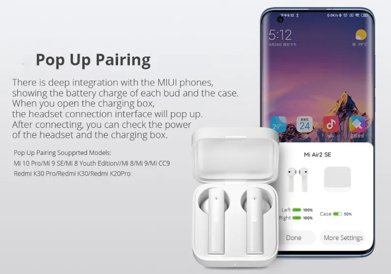 A Xiaomi Air 2 SE az Air 2 széria legolcsóbb, legkisebb tagja. Külsőre nagyon hasonlít a drágább modellekre, a bölcsőt viszont átalakították. Egy töltéssel 5 órán keresztül hallgathattok velük zenét, a töltődoboza pedig további 15 órányi energiát tárol magában. Ha kiveszitek a fületekből, akkor automatikusan megáll a zene, ami szerintem nagyon hasznos funkció: ha például sportoltok, és véletlenül kiesik, akkor rögtön észreveszitek, hiszen nem szól a muzsika. Oldalain érintésérzékeny felületeket találtok, vagyis anélkül válthattok számot vagy fogadhattok hívást, hogy elő kellene vennetek a telefonotokat. 9700 forintért a tiétek lehet.