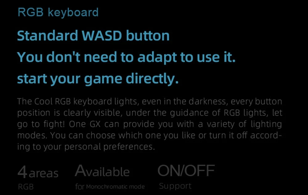 Nagyon jól eltalálták a dizájnt: kék gépház, világító RGB billentyűzet, igényesen kialakított szellőző nyílások teszik széppé a gépet. A hátulján találtok USB 3.0-s portot, Type-C csatlakozókat, valamint a jack aljzatot. Kapható hozzá kézi kontroller, így gyakorlatilag egy Windows alapú Nintendo Switch áll a rendelkezésetekre.