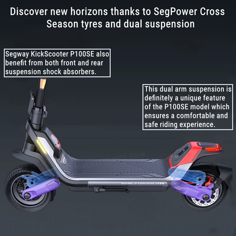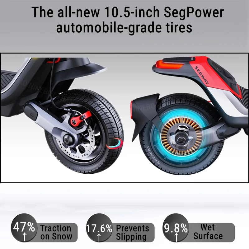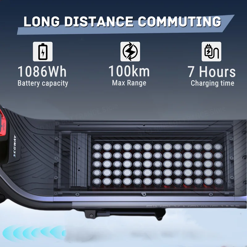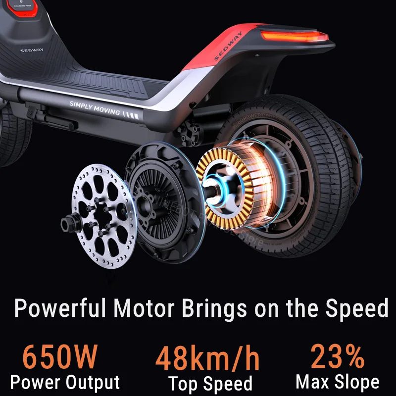 Ez gyakorlatilag egy motor, amit elektromos rollernek hívunk és értelemszerűen nem „benzinnel megy”. Az önmagában sokat elmond, hogy 3,9 másodperc alatt gyorsul 48 km/órára, másrészt onnan normálisan meg is áll a két hidraulikus tárcsafékeknek köszönhetően. Ehhez a tempóhoz már megfelelő, úthibákat jól kompenzáló 11 inch-es kerekek és a meglehetősen komplex, alumínium ötvözetből készülő váz és lengéscsillapítók is rendelkezésre állnak. A hidraulikus rugóstagok 15 fokozatban állíthatók, illetve a tapadást az SDTC – Segway Dynamic Traction Control – rendszer segíti, amelyik dinamikusan osztja el a két keréken a nyomatékot, attól függően, hogy hol csúszik meg kevésbé a gumi.