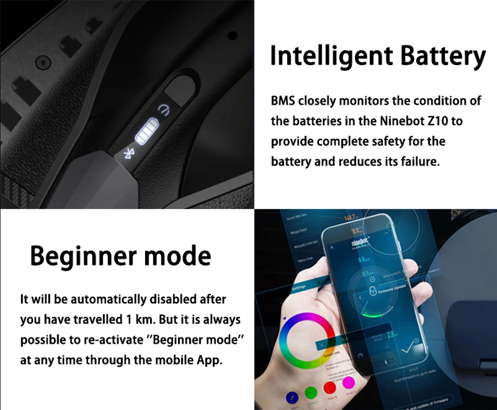 A Ninebot Z10 nem egy mai darab, évekkel ezelőtt jött ki, körülbelül akkor, amikor 2019-2020 magasságán elkezdett szerkesztőségünk két tagja uniciklizni. A Z10 a legnagyobb kereke a Ninebotnak, igazi vastagkerekű, terepezős vadállat, aminek a rollerekkel szemben az a legnagyobb előnye, hogy mindenhol elfér, és egy mozdulattal fel tudjátok emelni, és felvinni mondjuk egy lépcsőn vagy betolni egy boltba. Menetteljesítmények szempontjából vetekszik a komolyabb rollerekkel a Z10, 45 km/órára képes gyorsulni, 1800 W a motor ereje, 25%-os lejtőkön is felmegy, és akár 100 kilométer is kijön a 995 Wh-s akkuból. A valóságba ez persze inkább 60 kilométer, főleg, hogy ekkora gépeket a „súlyosabb egyének” vásárolnak, egy 105 kilós barátom ilyennel járt évekig.
