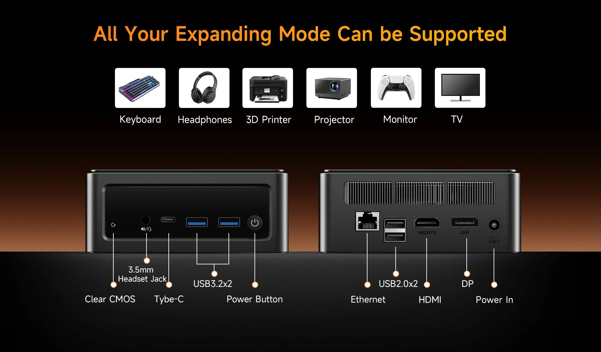 A többi csatlakozó listája sem rövid, sok jó port kis helyen is elfér: két USB 3.2 és 2 db USB 2.0 port, Gigabites LAN, 3,5 mm-es jack. Vezeték nélkül pedig adott a Bluetooth 5.2 és a WiFi 6 modul. A kompakt ház mérete mindössze 12,5×11,2×4,4 cm, tehát kisebb, mint egy tégla, a tömege pedig annyira kicsi, hogy simán bedobhatod a táskádba, ha hordozható munkaállomásként használnád.