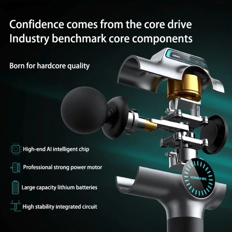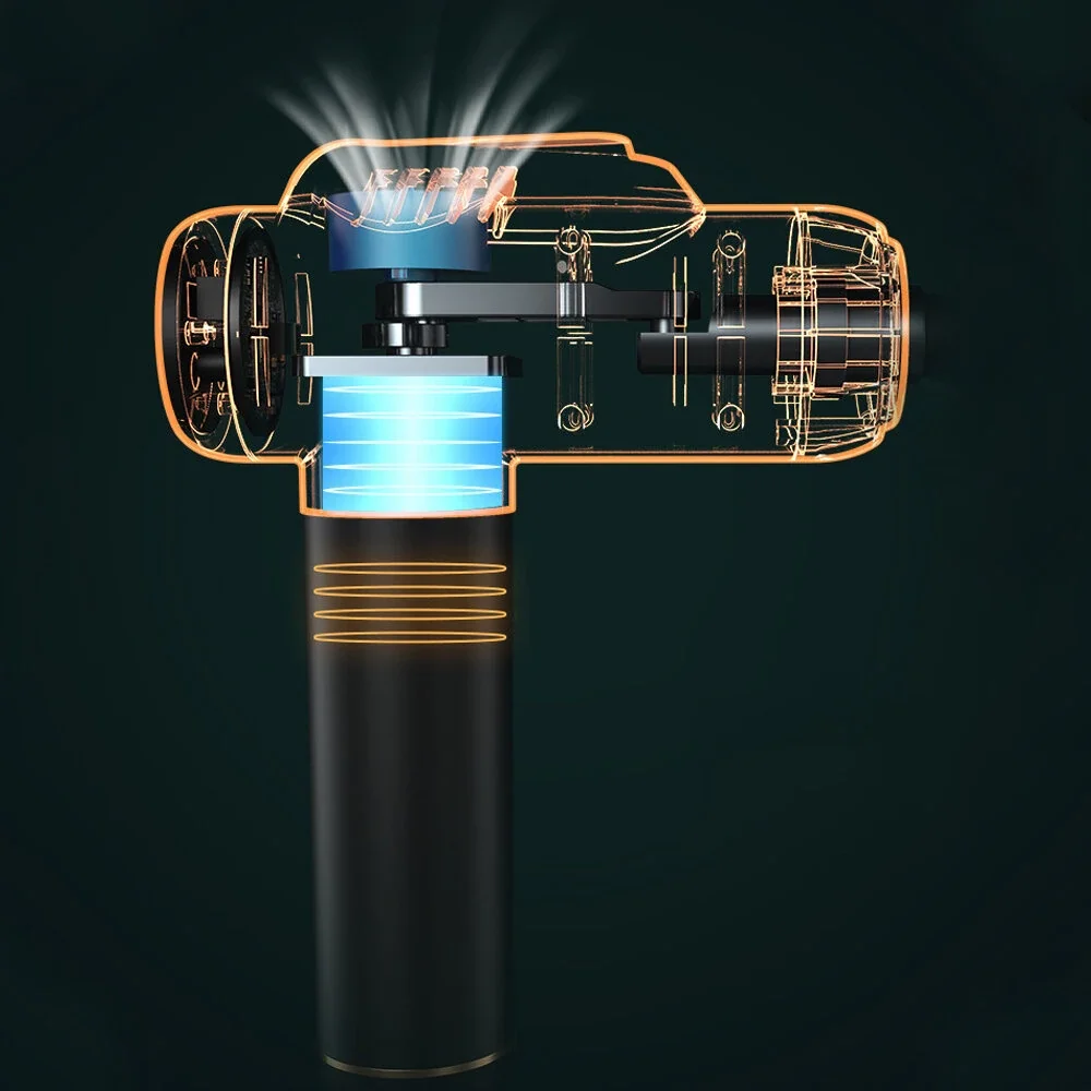 Kefe nélküli motorja egész erős, percenként 9800 fordulatra képes, zajkibocsátása pedig nem haladja meg a 45 dB-t. A borítás alatt lítiumos akkupakk kapott helyet, ami egyetlen feltöltésből akár 10 órán keresztül bírja, de ez nagyban függ a fokozatok használatától. Testrészenként teljesen eltérő, hogy melyik részen, milyen rendszerességgel és milyen hosszú időtartamig ajánlott a masszírozás, de összességében naponta 10-15 perc használatra találták ki, nem többórányi dögönyözésre, ezért ez a 10 óra elég sokáig kitart.