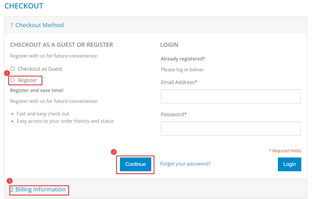 Lépj a fizetési oldalra, folytasd vendégként (vagy hozz létre egy fiókot), majd töltsd ki a „Számlázási információkat”.