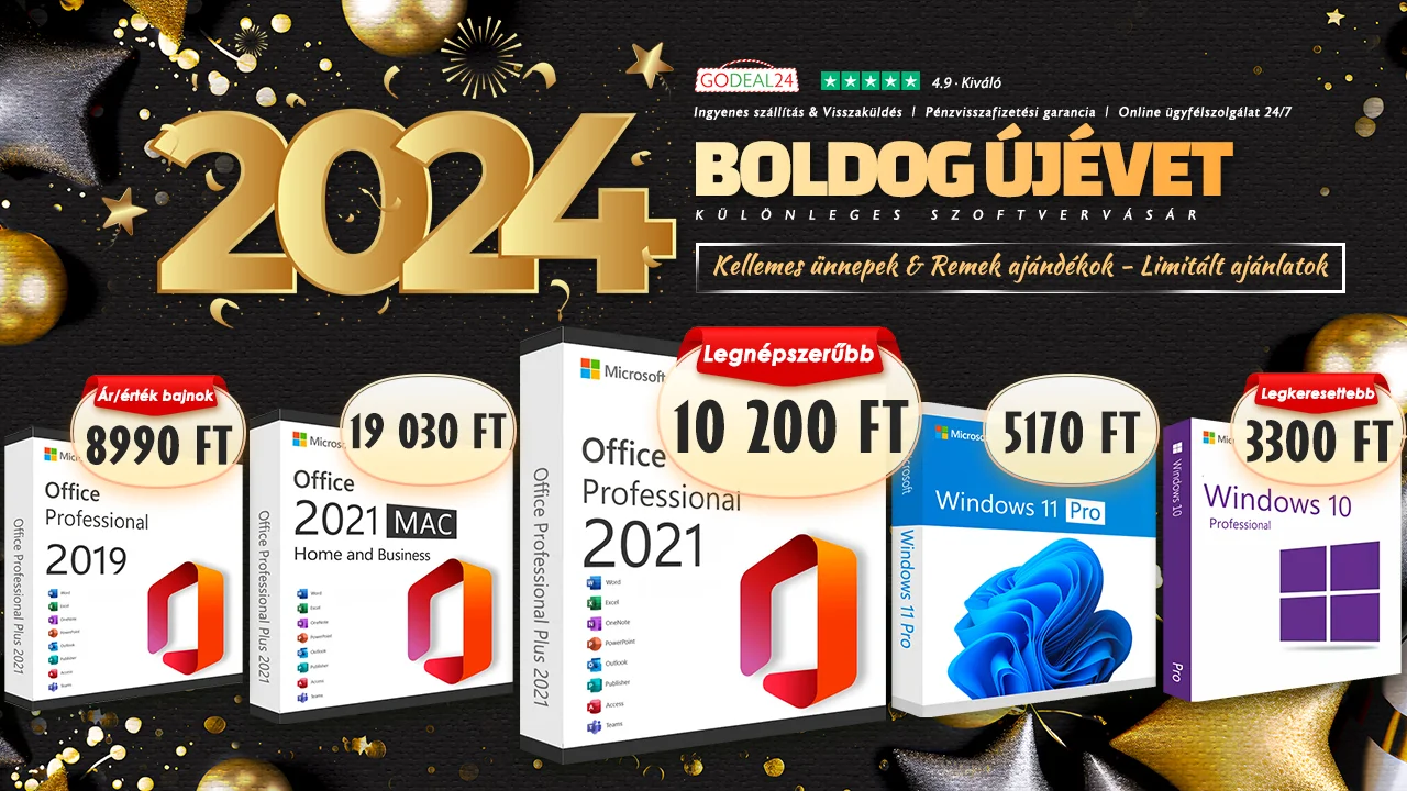 Szeretnétek, hogy a számítógépetek zökkenőmentesen működjön és javuljon a hatékonyságotok 2024-ben? A Microsoft Office csomagok és a Windows operációs rendszer a legjobb választás a számotokra. Itt az alkalom, hogy a GoDeal24 2024-es újévi szoftvervásárán kedvezményes áron szerezzétek meg a Microsoft szoftverkulcsokat. Ha az aktuális tanévre vagy munkához telepítetek számítógépet, akkor érdemes megfontolnotok a Microsoft Office Professional 2021 élethosszig tartó licencének megvásárlását, amely most csak XY forintért a tiétek lehet. Megkapjátok a Word, Excel, PowerPoint, Outlook, OneNote, Publisher és Access Pro verzióját – olyan eszközöket, amelyekkel növelhetitek a hatékonyságotokat. A vásárláskor azonnali hozzáférést kaptok a szoftver licenckulcsokhoz és letöltési linkekhez, valamint élethosszig tartó, ingyenes támogatás is jár melléjük, ha a későbbiekben bármelyik programmal probléma merülne fel.