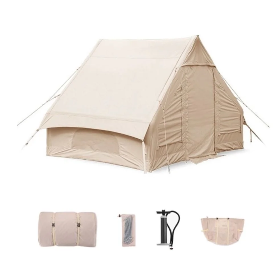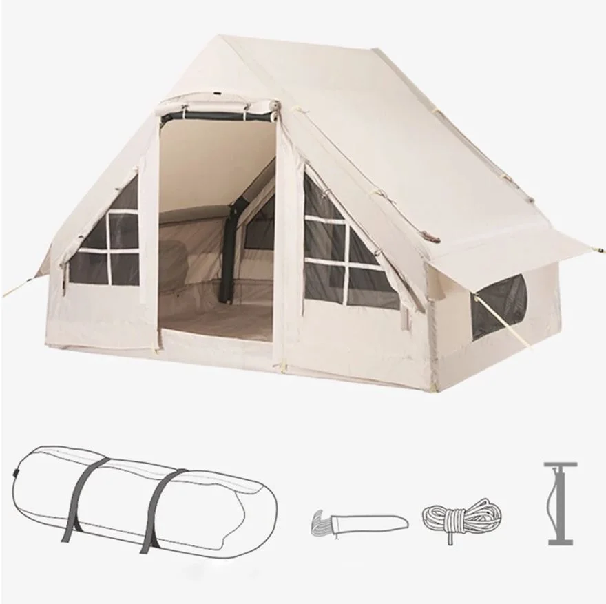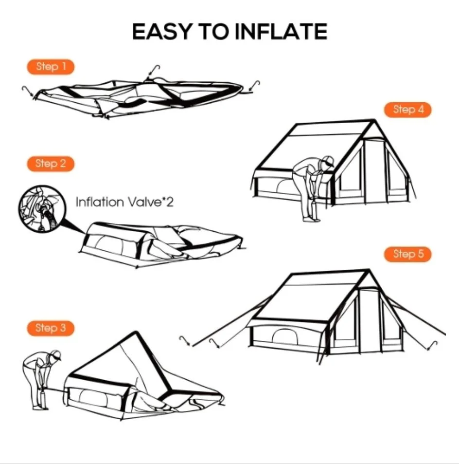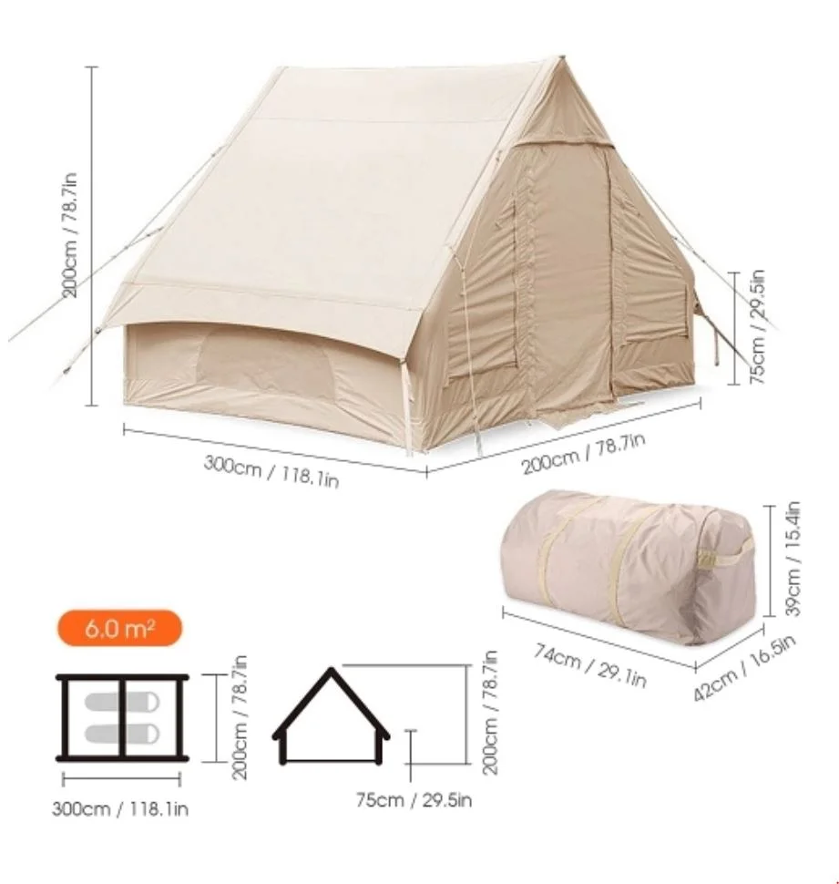 A Cafago egy tartós és vízálló anyagból készült felfújható sátrat ajánl a figyelmetekbe. A szellőző tető, a hat szúnyoghálós ablak és a a két cipzáras ajtó jó légáramlást biztosít a forró nyári napokon is. A csomagban található pumpával 5-10 perc alatt felfújhatjátok a két darab szelepen keresztül. A cölöpökkel és az erős kötéllel könnyen rögzíthetitek, hogy el ne vigye a szél. A leeresztése ugyanolyan kényelmes mint a felfújás, a tárolótáskában kis helyet foglal és könnyen tárolhatjátok. A sátor mérete 300x200x200 cm, de a táskában csak 74x42x39 cm helyet foglal el, súlya nincs 15 kg. 5-8 ember befér, de alvásra csak két embernek lesz alkalmas.