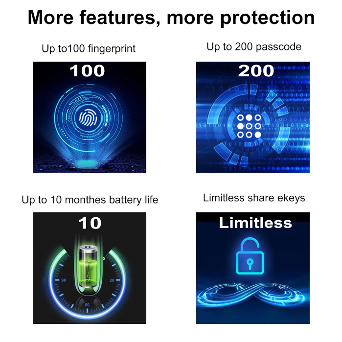 A TOUCA51 a WELOCK család egyik legsokoldalúbb tagja. Ez a modell tényleg mindent tud: ujjlenyomat-olvasás, érintőbillentyűzet, Bluetooth-os és alkalmazásos vezérlés, időzített hozzáférések… Egyszóval a biztonság új szintje. És ami a legjobb: nem kell kompromisszumokat kötni – mindenféle nyitási mód kéznél van, és azt használod, amelyik épp a legkényelmesebb.