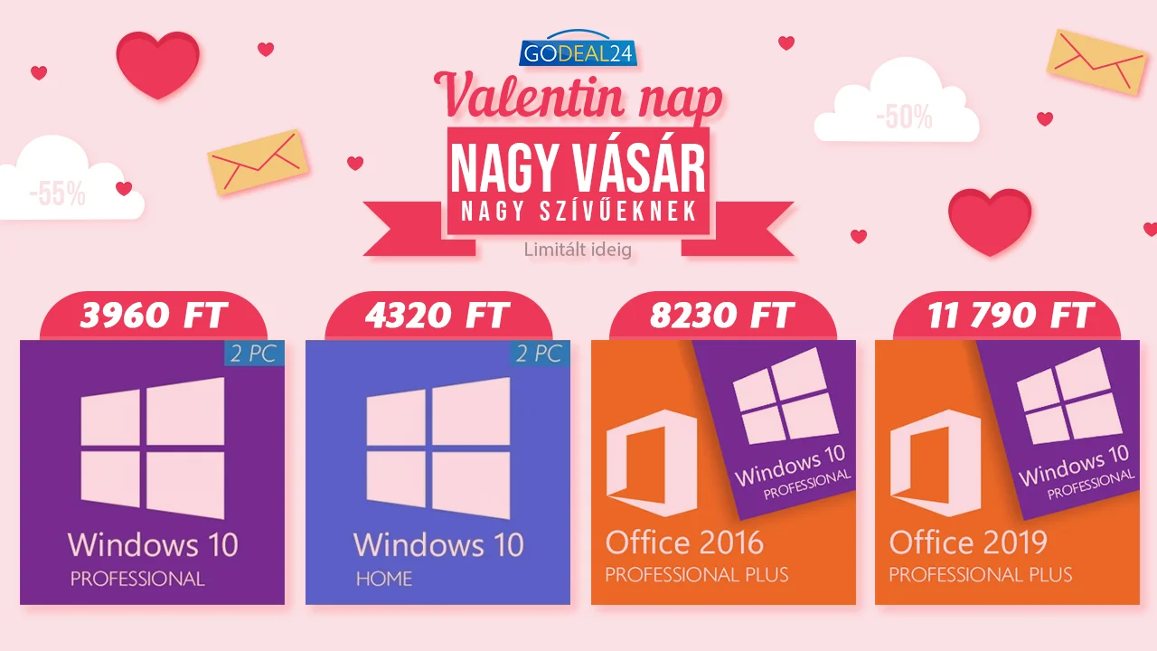 Ebben az évben Valentin nap vasárnapra esik, így biztosan lesz időtök foglalkozni a szeretteitekkel. Sajnos idén kicsit másképpen fog telni ez a nap is, de ez nem akadályozhat meg titeket abban, hogy valamilyen praktikus ajándékkal lepjétek meg a párotokat, főleg akkor, ha az le is van árazva. A Microsoft termékei, úgymint a Windows 10 és az Office programcsomagok, amelyek segítenek a PC-teket gyorsabbá, a munkavégzéseteket pedig hatékonyabbá tenni.