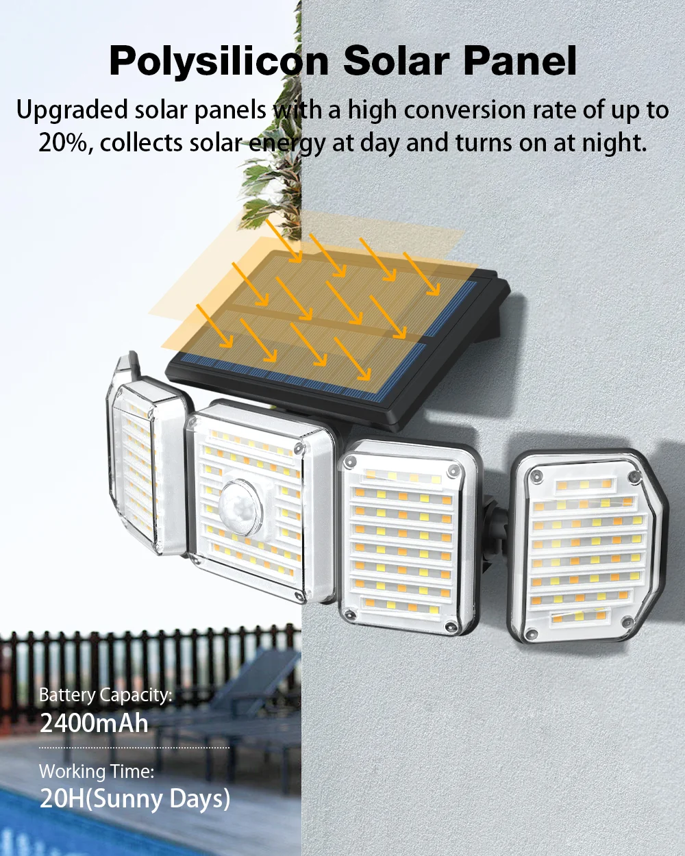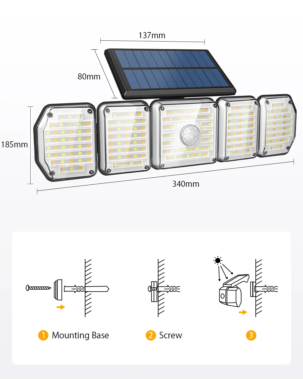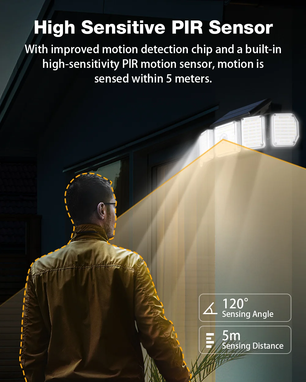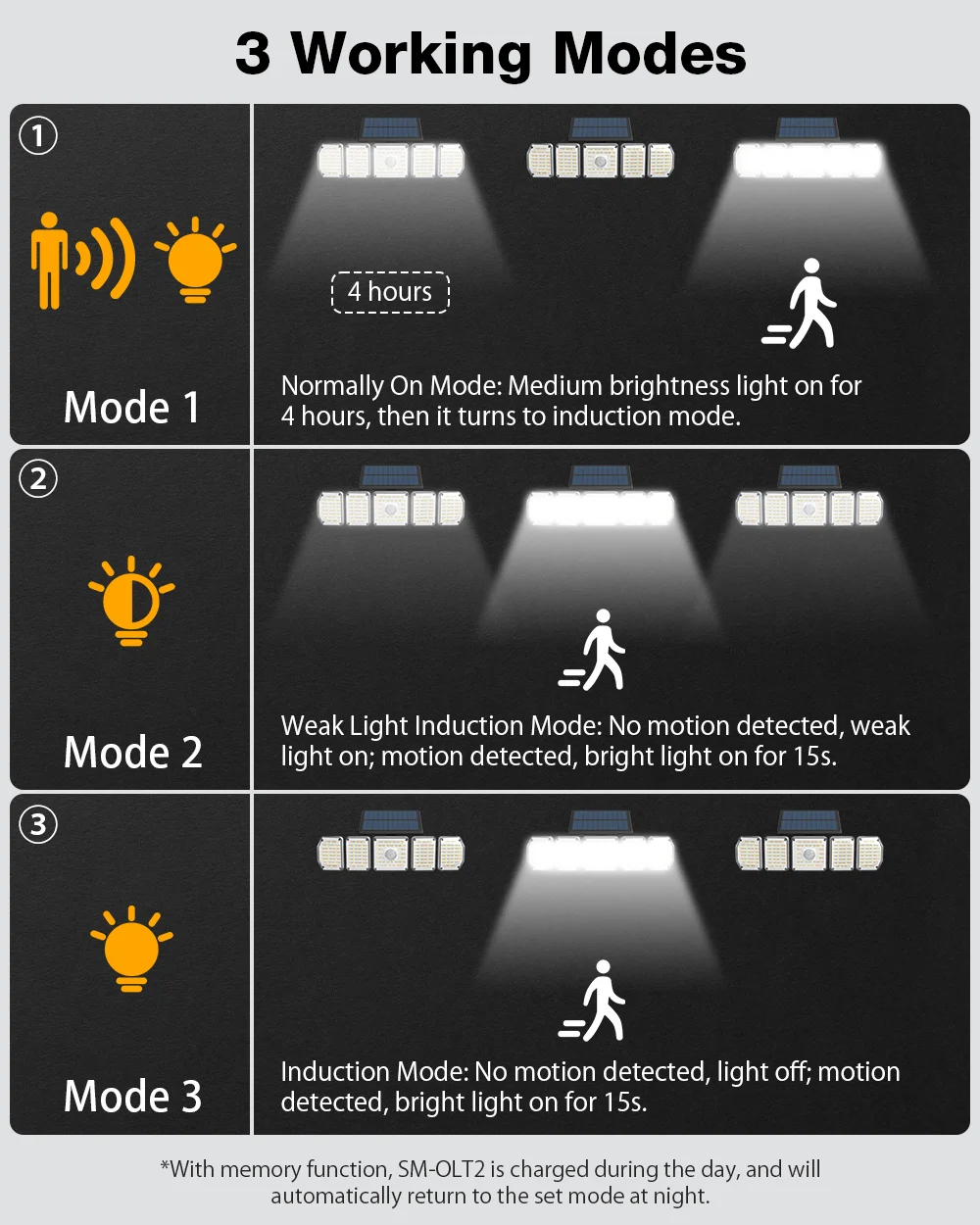- Szürkületben felkapcsol és közepes fényerőn megy 4 órán keresztül, utána pedig mozgásérzékelős módra vált, és mozgás esetén 15 másodpercig világít.