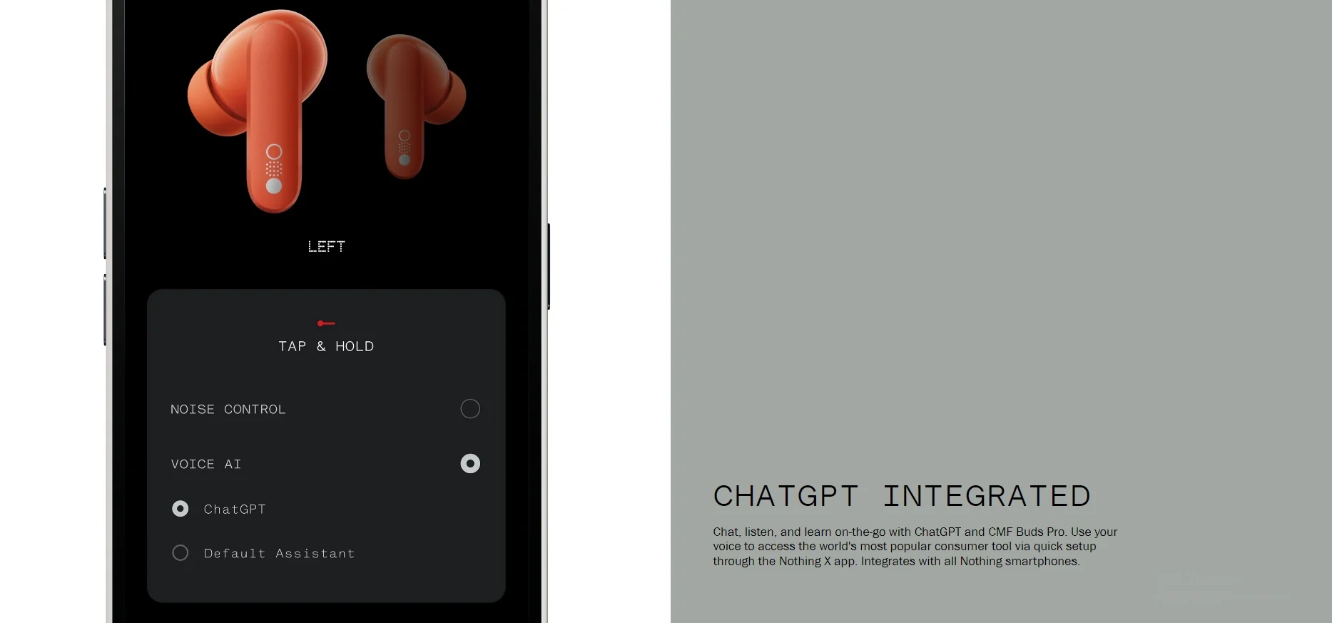 Az applikációban személyre szabhatjátok a hangzást az előre definiált és az egyénileg állítható EQ beállításokkal, átszabhatjátok az érintéses vezérlést, és ha már itt tartunk, a hangerő is állítható a fülesekről. Van alacsony késleltetésű mód, ha valaki játékra használná, illetve külön kapcsolható, hogy két eszközhöz egyszerre is tudjon kapcsolódni a CMF Buds Pro. Az appból továbbá leválthatjátok a gyári hangasszisztenst a ChatGPT-re.