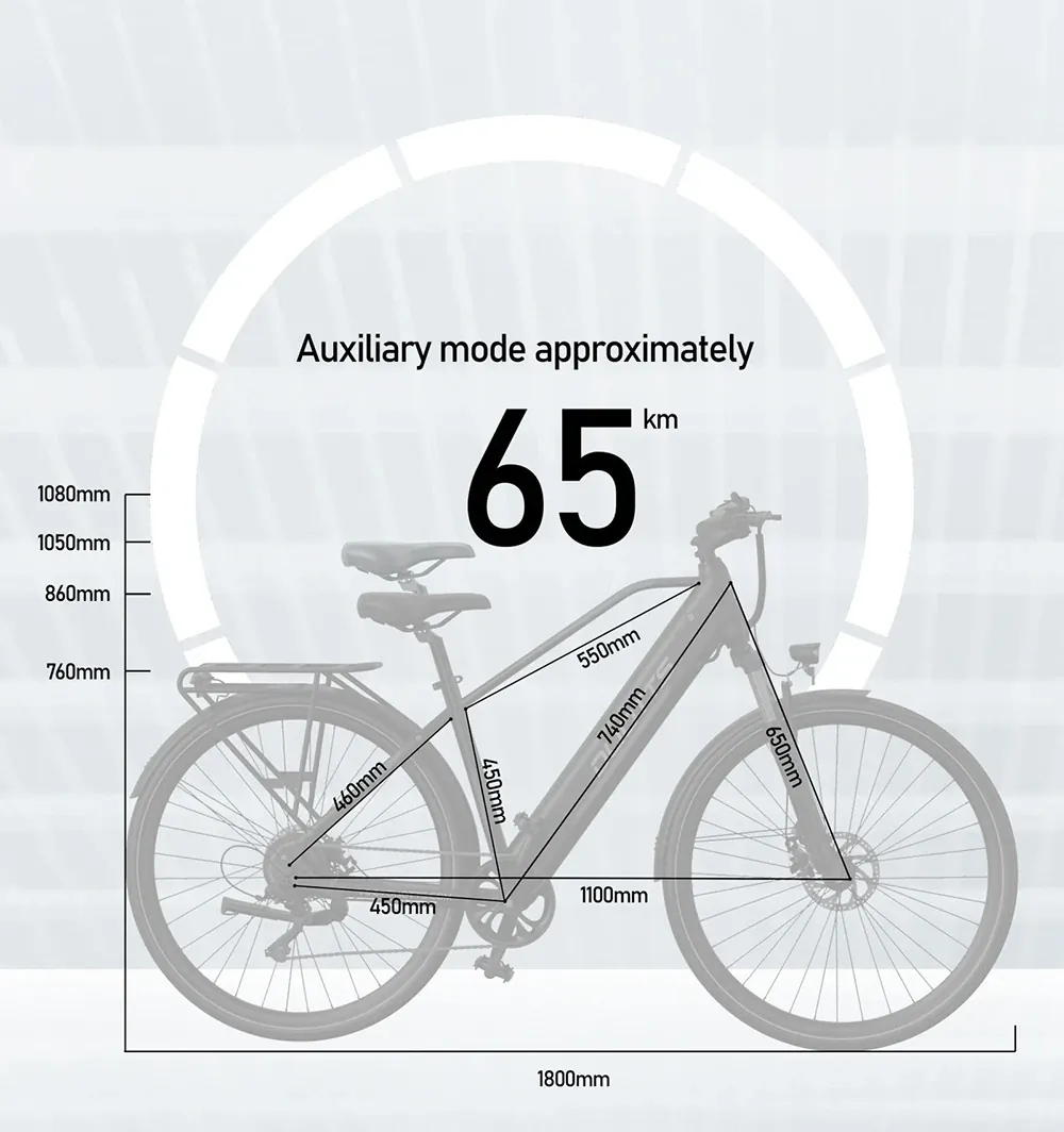 A 27,5×2,25 colos kerekek kellemes egyensúlyt teremtenek a stabilitás és a gördülékenység között. Városi aszfalton és enyhébb terepen is kényelmesen gurul, miközben elég széles a jobb tapadás érdekében. A bringa 27,8 kg-ot nyom, ami a kategóriájában kifejezetten vállalható, ráadásul a maximális teherbírása 150 kg – tehát utas, csomag és napi holmi is simán belefér a keretbe. A hátsó acél csomagtartó akár 25 kg-ig terhelhető, így nyugodtan rárakhatod a táskádat, a bevásárlást vagy akár egy kisebb hátizsákot is. Nem billeg, nem zörög, masszív, mint egy jó túrabringa. A 193×72×118 cm-es váz ideális a 170–200 cm közötti bringásoknak, a kormányon pedig egy háromgombos, színes LCD kijelző mutatja az összes fontos adatot: sebesség, akkumulátor töltöttsége, megtett táv, rásegítési szint.