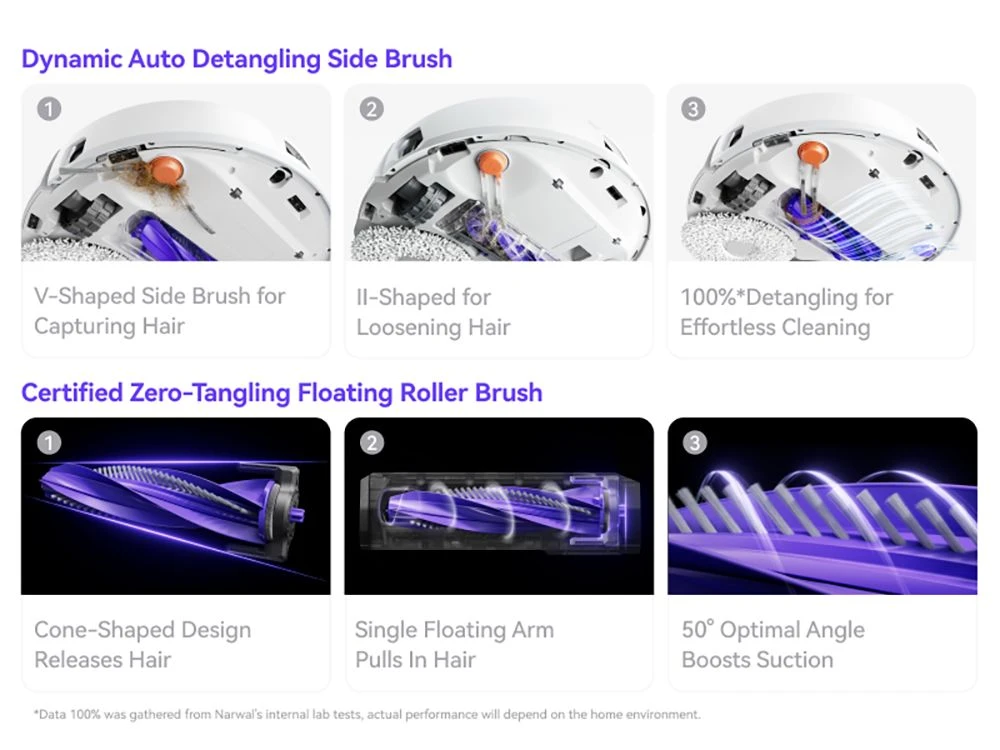 A márka másik újdonsága 11 000 Pa szívóerővel szippant fel mindent, ami a padlódon rejtőzik és fel is mos – nem akármilyen ronggyal maszatol: a szabadalmaztatott Reuleaux mop 8 N nyomással és 180 RPM-es fordulattal olyan makacs foltokat is eltüntet, amiket te már régen megszoktál, hogy ott vannak. Az EdgeReach mozdulatok a sarkokba is elérnek, így a rejtett zugok sem bújhatnak el a tisztaság elől. A DualFlow gubancmentes rendszer hatékonyan bánik el a hajszálakkal, hogy még a hosszú bundájú házi kedvencek sem fognak ki rajta.