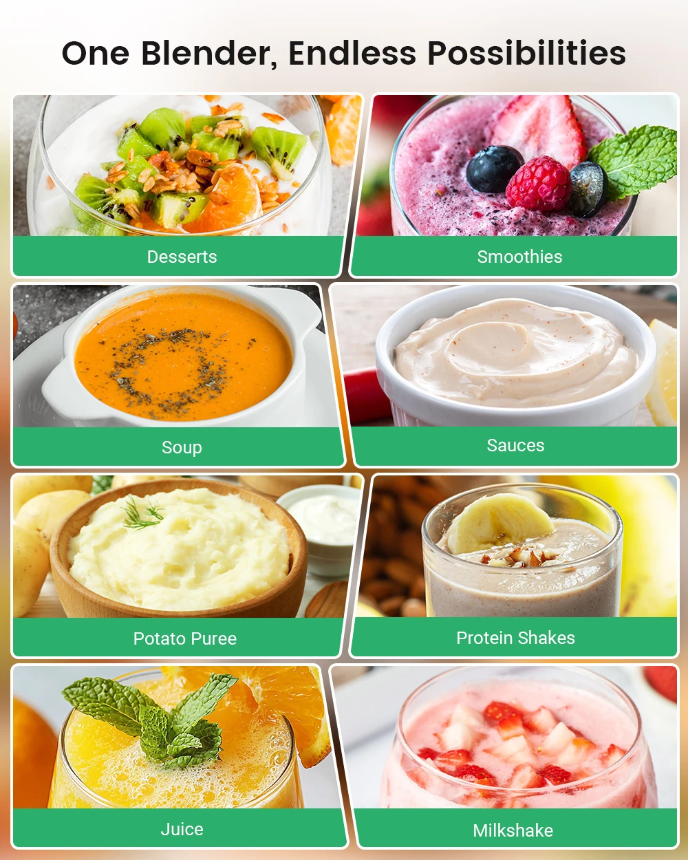 A gép mérete 230×200×450 mm, vagyis nem apró, de nem is foglal el egy fél konyhapultot. Ami a használatot illeti: gyümölcslevek, smoothie-k, fehérjeturmixok, krémlevesek, pürék, mártások, bébiételek – bármit elintéz. A gép dizájnja pedig letisztult és modern, a fémes ezüst szín nem rikító, de nem is tűnik el a konyhádban.