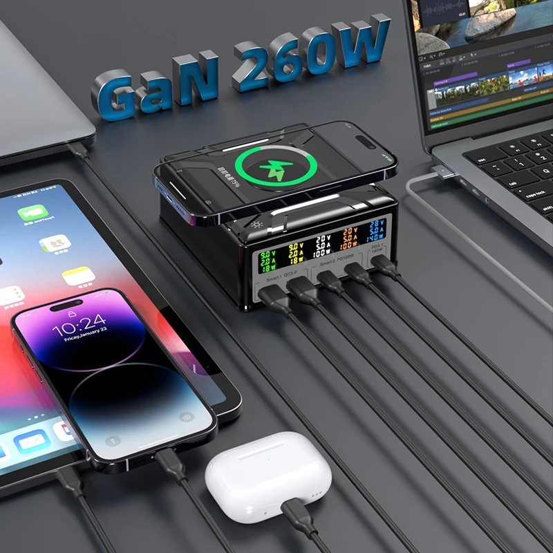 Digitális kijelzője valós időben mutatja az egyes portok aktuális töltési teljesítményét, így mindig pontosan tudod, hogy melyik eszköz mennyi energiát kapott. Emellett a készülék többféle töltési protokollt támogat, beleértve a PD3.1, QC4+, QC3.0 és PPS szabványokat, így bármilyen modern kütyüvel kompatibilis.
