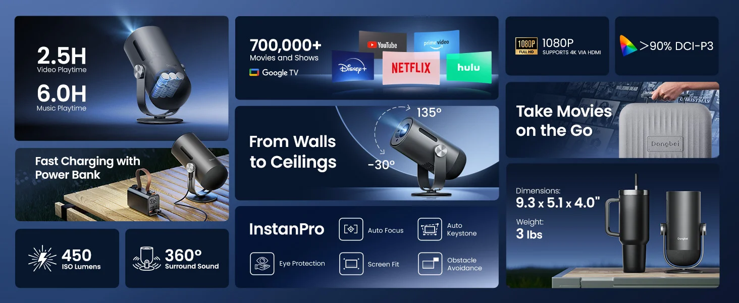 Unod, hogy mindig a tévé vagy a laptop kijelzőjére vagy korlátozva? Itt az idő, hogy bárhol, bármikor mozizz egy nagyobb képernyőn! A Dangbei Freedo egy kompakt, hordozható projektor, ami hivatalos Netflix licencel rendelkezik, Full HD felbontású, és ráadásul Dolby Audio-val szólal meg, hogy a hang is ütős legyen. Automatikus tárgyelkerülés, fókusz és trapézkorrekció gondoskodik róla, hogy mindig tökéletes képed legyen, akár a falra, akár a plafonra vetítesz. Az akkus működés pedig órákon át igazi szabadságot ad a filmnézéshez vagy a zene hallgatáshoz!