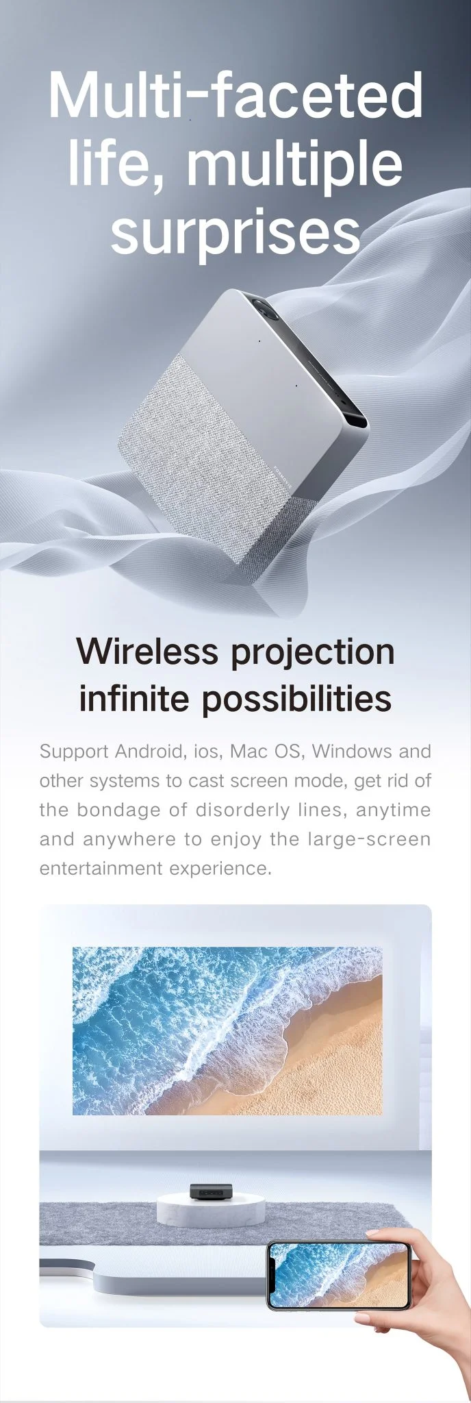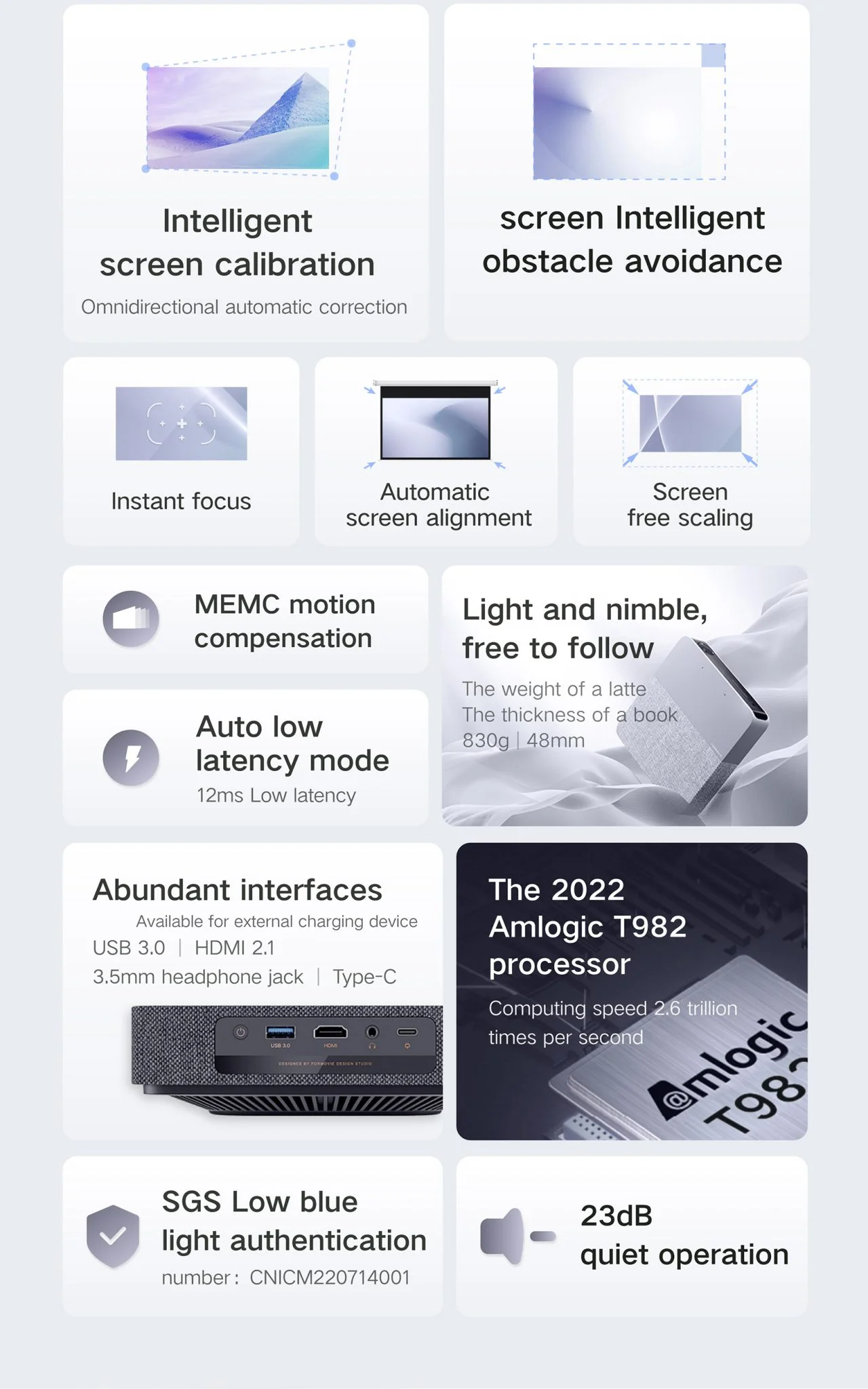 Ahogyan a HDR10 és a MEMC technológiákat is, ez utóbbi egy megoldás, ami tulajdonképpen a screen tearinget, a képtörést gátolja meg, kiegészítő képkockák beszúrásával. A Fengmi S5 Mini természetesen rendelkezik képernyő tükrözéssel is, Android, iOS, Mac OS és Windows rendszereket futtató hardverekkel képes együttműködni. Aki pedig nem a vezetéknélküli kapcsolatot venné igénybe, annak egy HDMI, egy Type-C vagy egy USB port áll a rendelkezésére. De a lényeg persze az, hogy minden lézerprojektor, ez is remek képet ad, a legtöbben emiatt fogják megvenni.